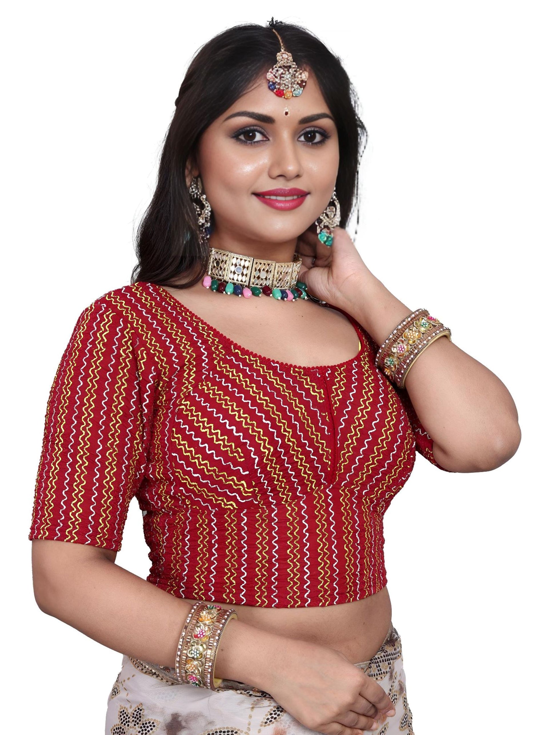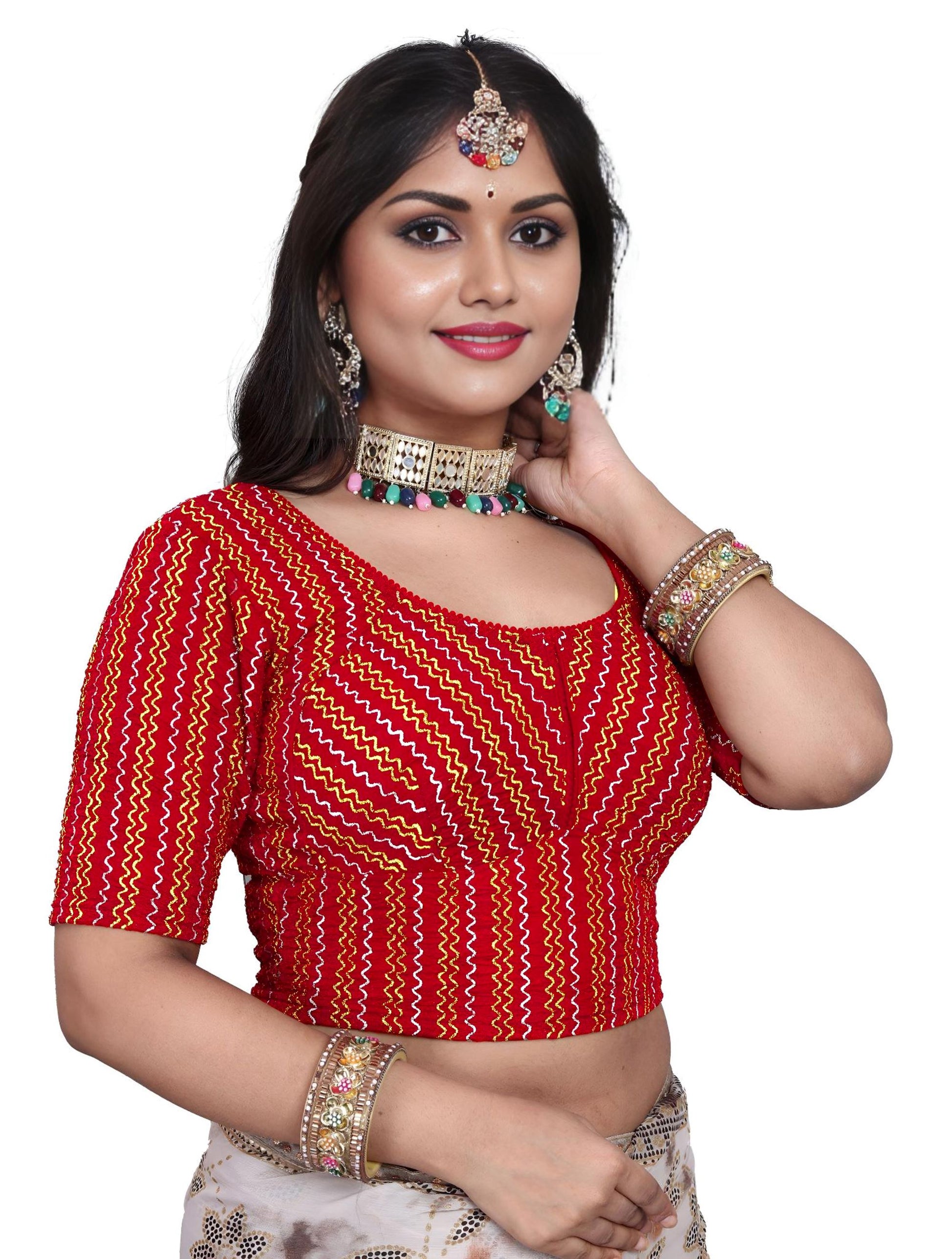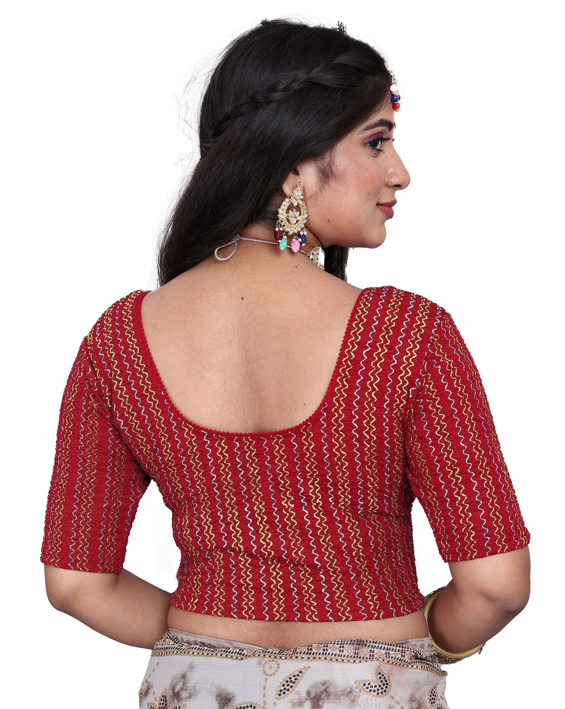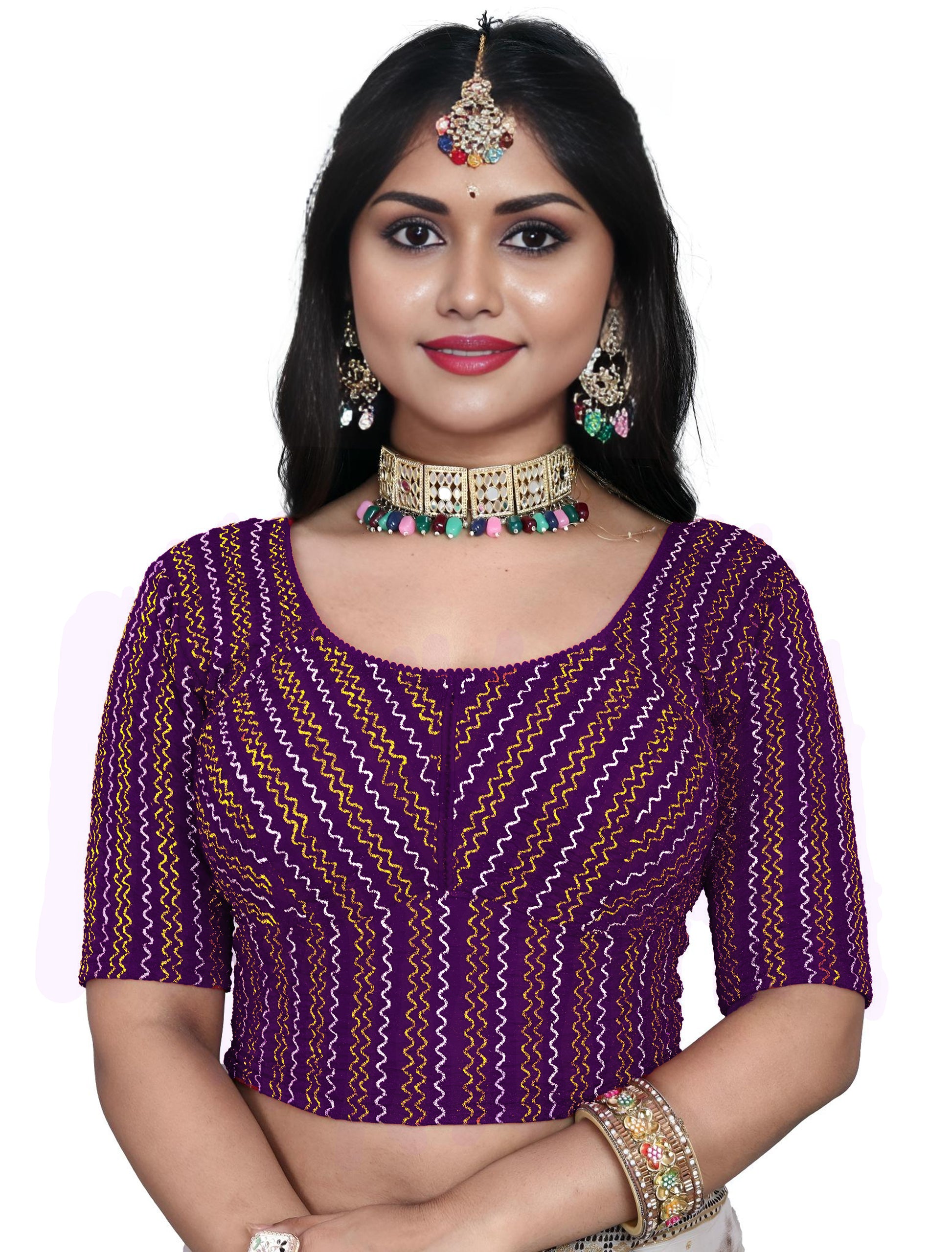 PU Fashion Designer Stretchable Embroidery Blouse for Saree & Lehenga