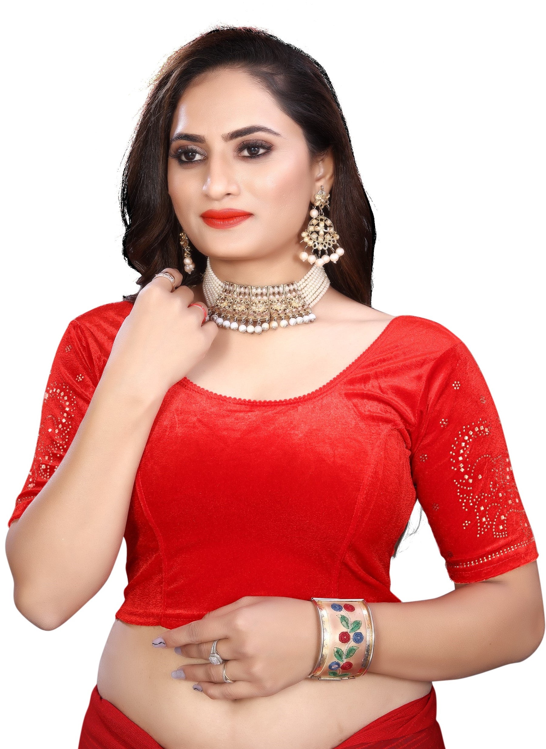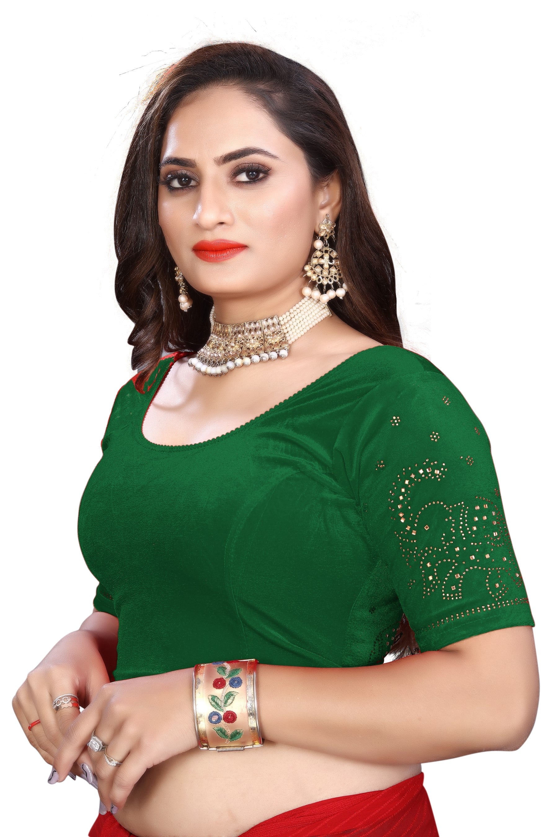 PU Fashion Fancy Velvet Blouse with Peacock and Floral Design | Readymade Saree Blouse for Women