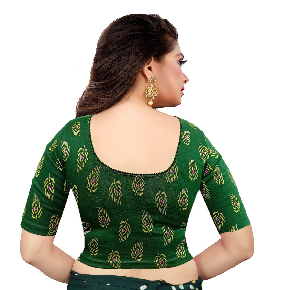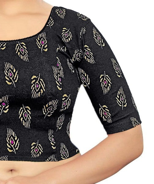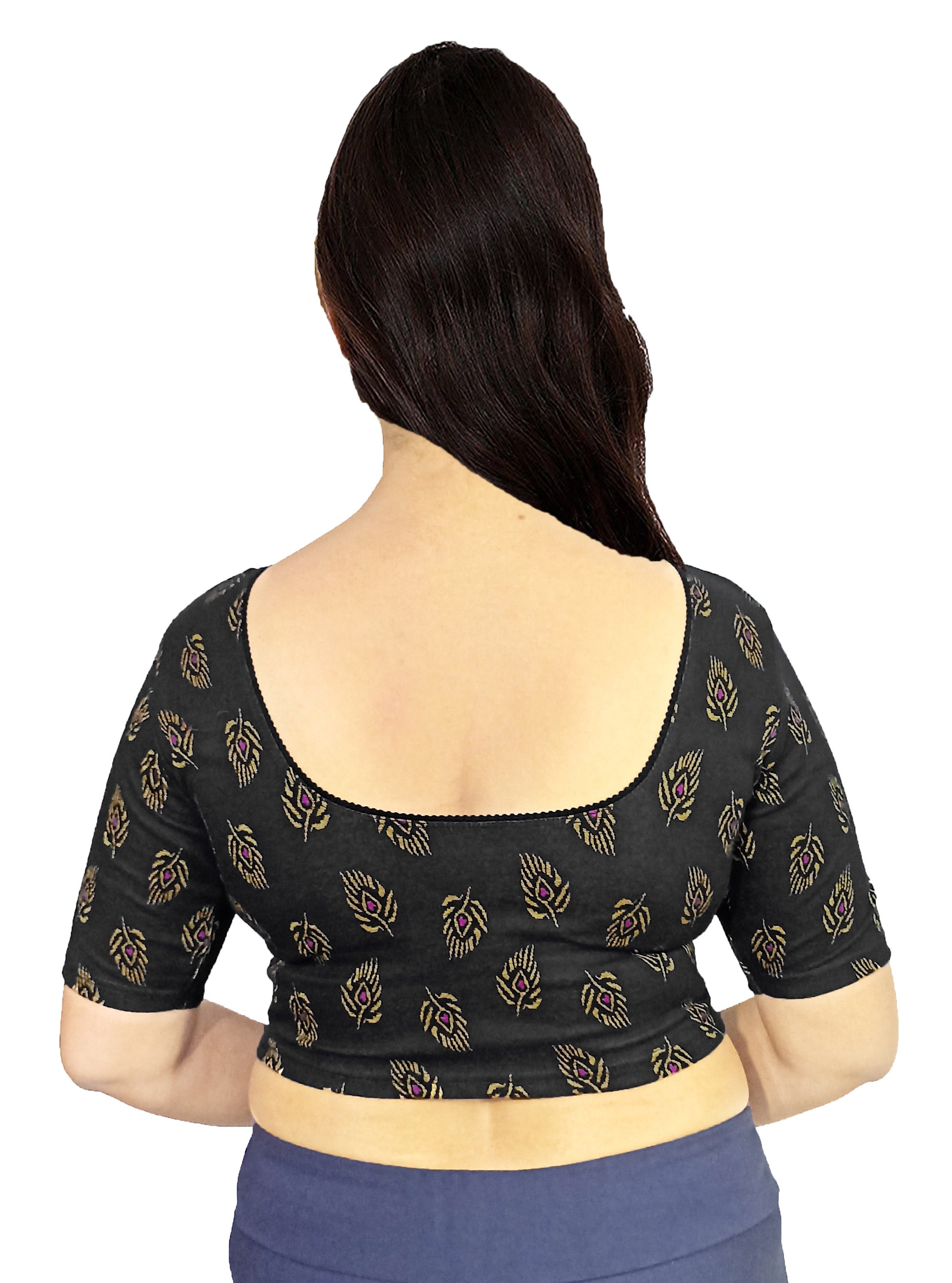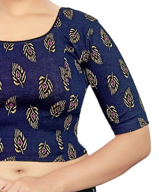 PU Fashion Fancy Velvet Blouse with Peacock and Floral Design | Readymade Saree Blouse for Women