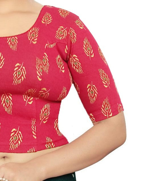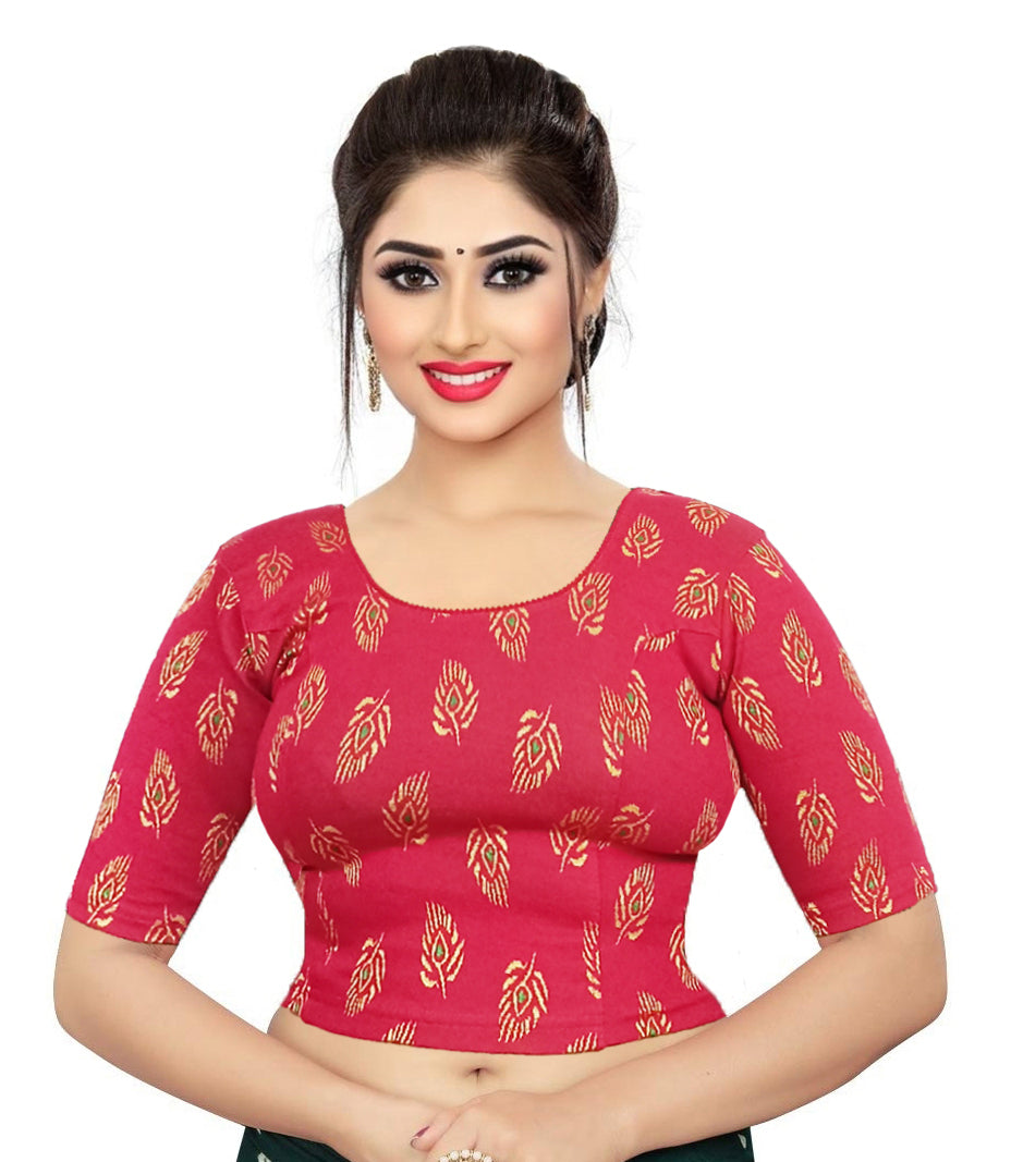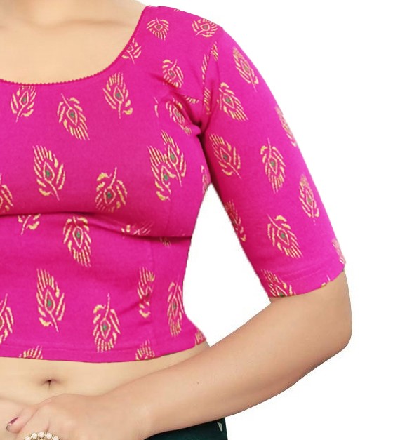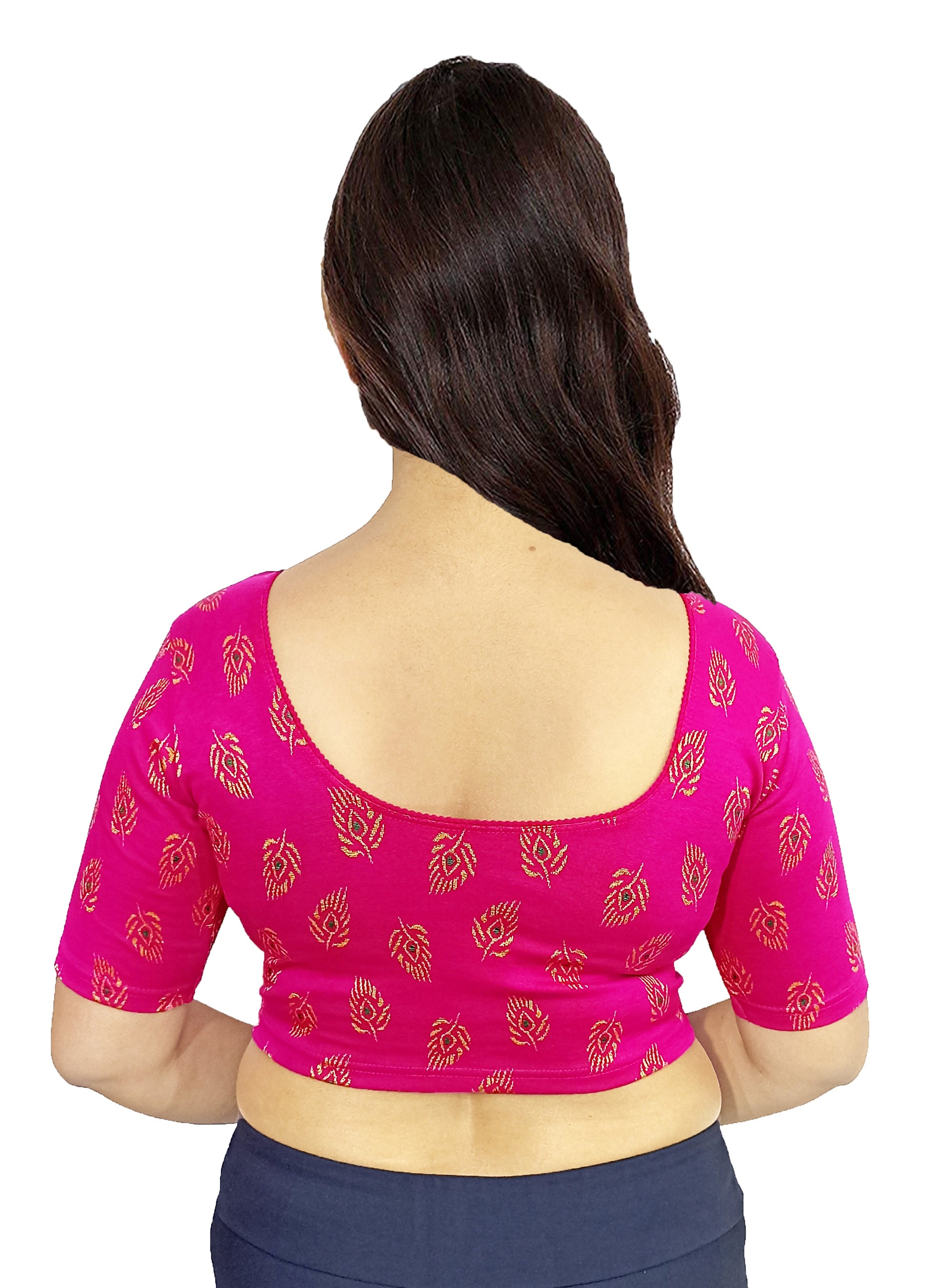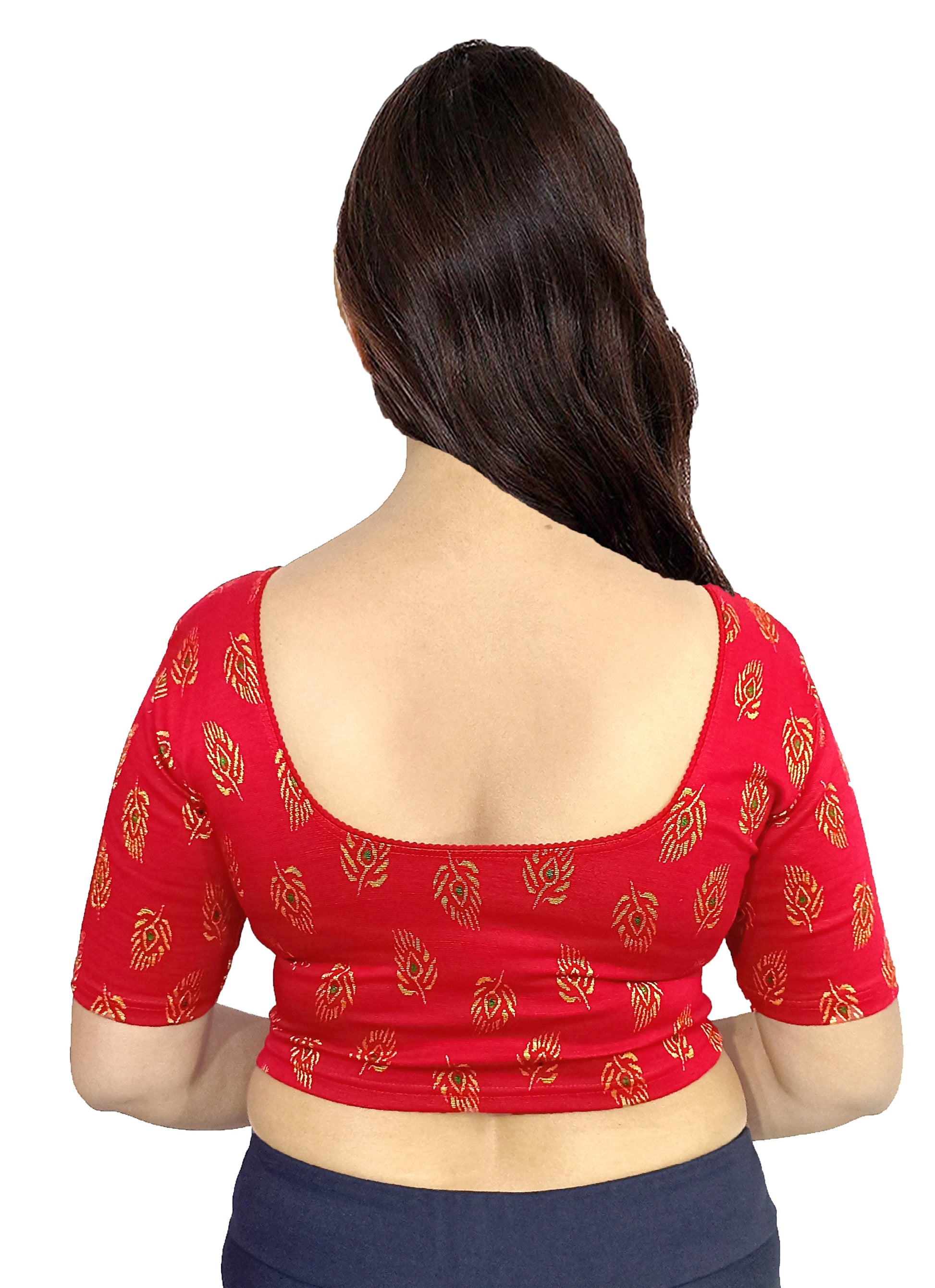 PU Fashion Fancy Velvet Blouse with Peacock and Floral Design | Readymade Saree Blouse for Women