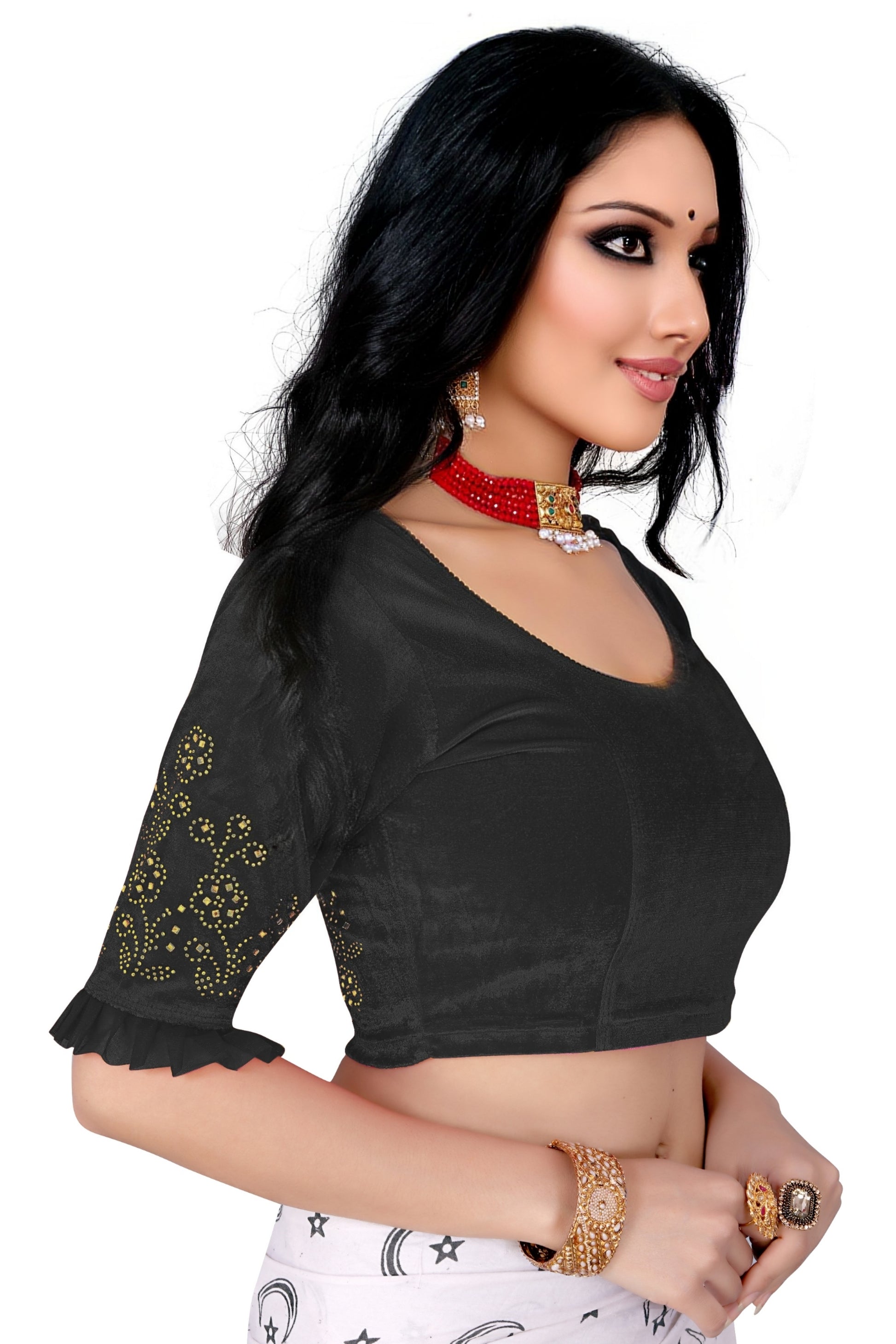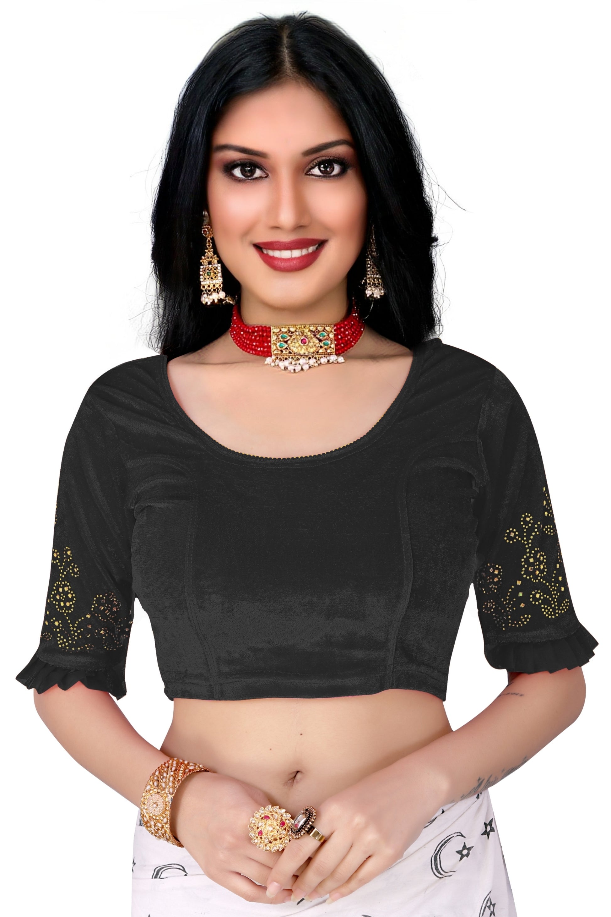 PU Fashion Black Velvet Fancy Blouse with Golden Work | Readymade Designer Blouse for Saree and Lehenga