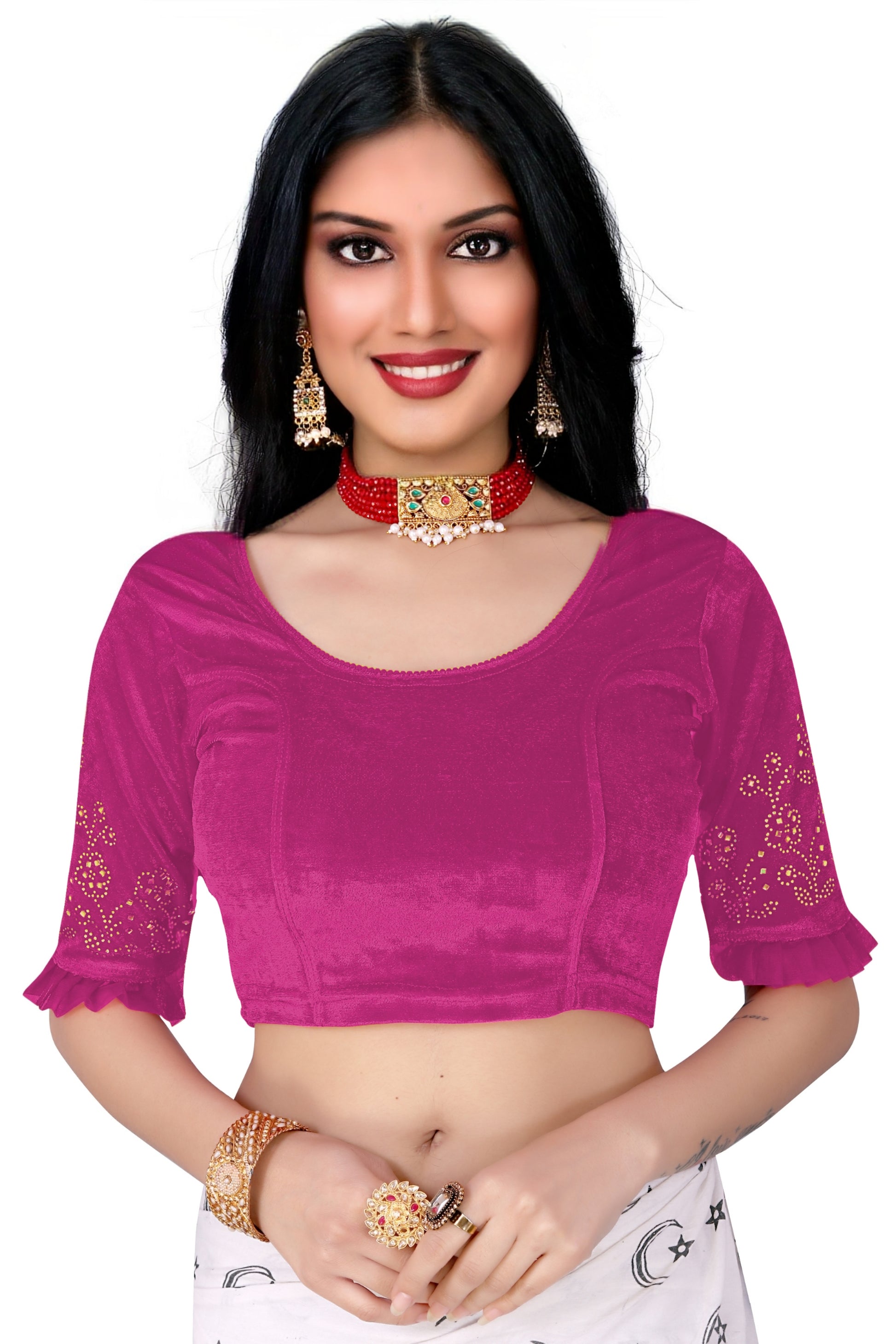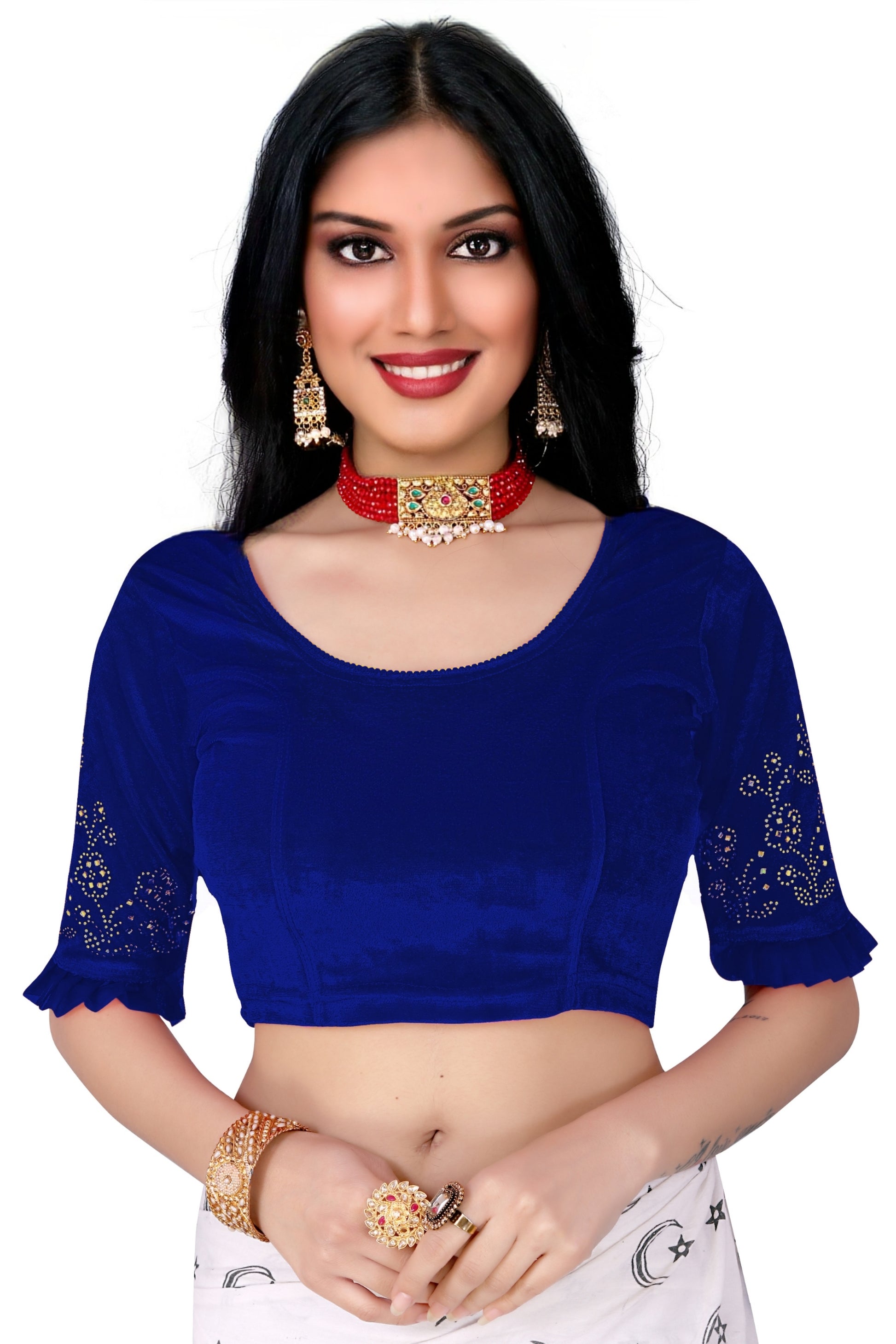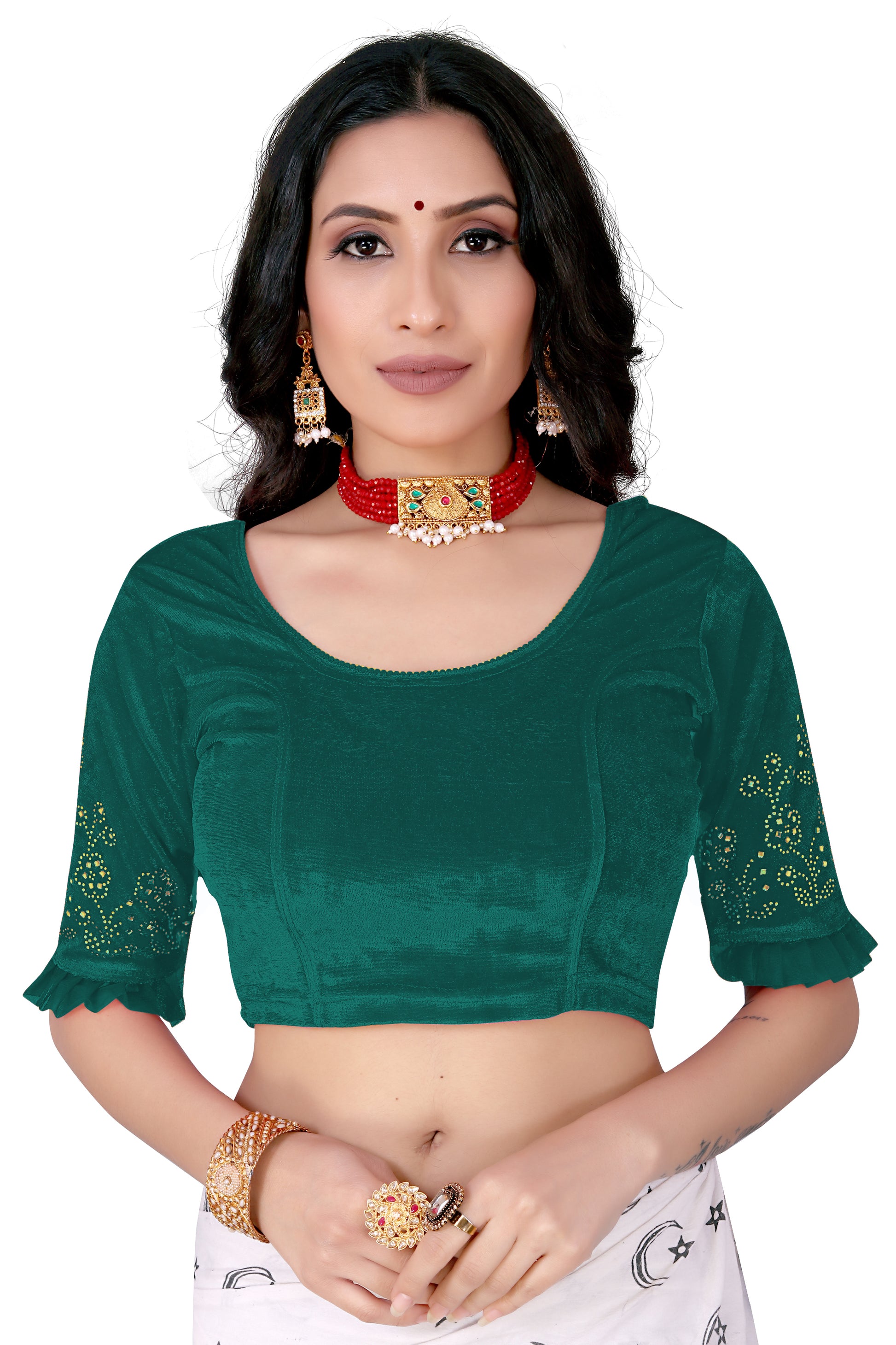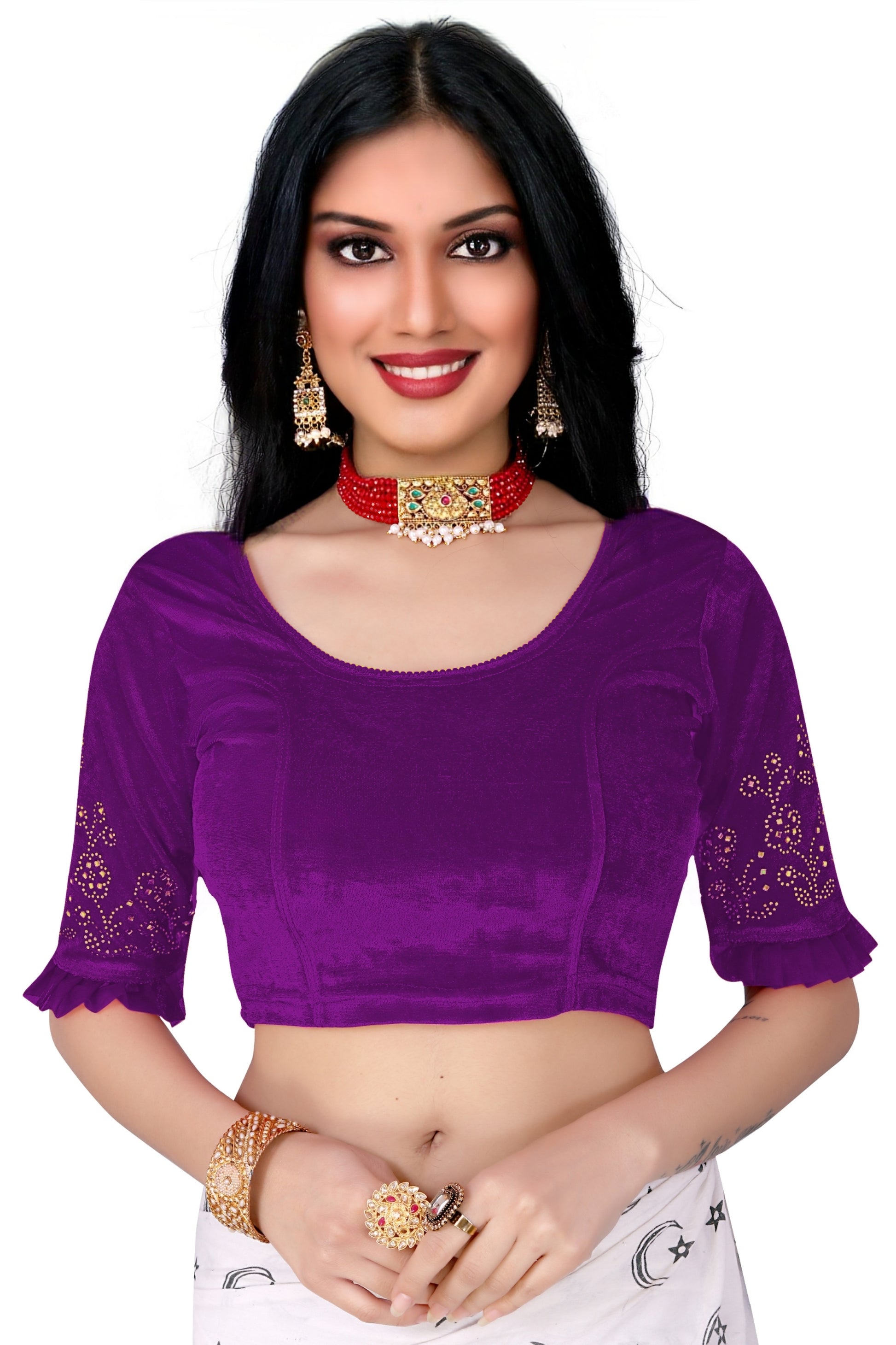 PU Fashion Fancy Velvet Blouse with Peacock and Floral Design | Readymade Saree Blouse for Women