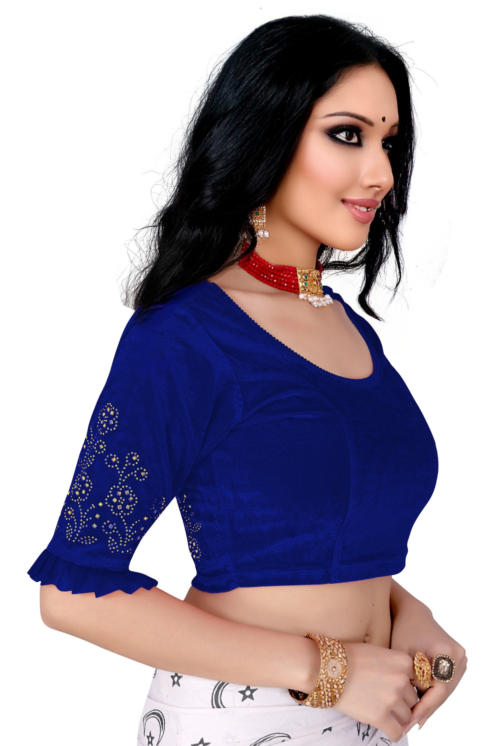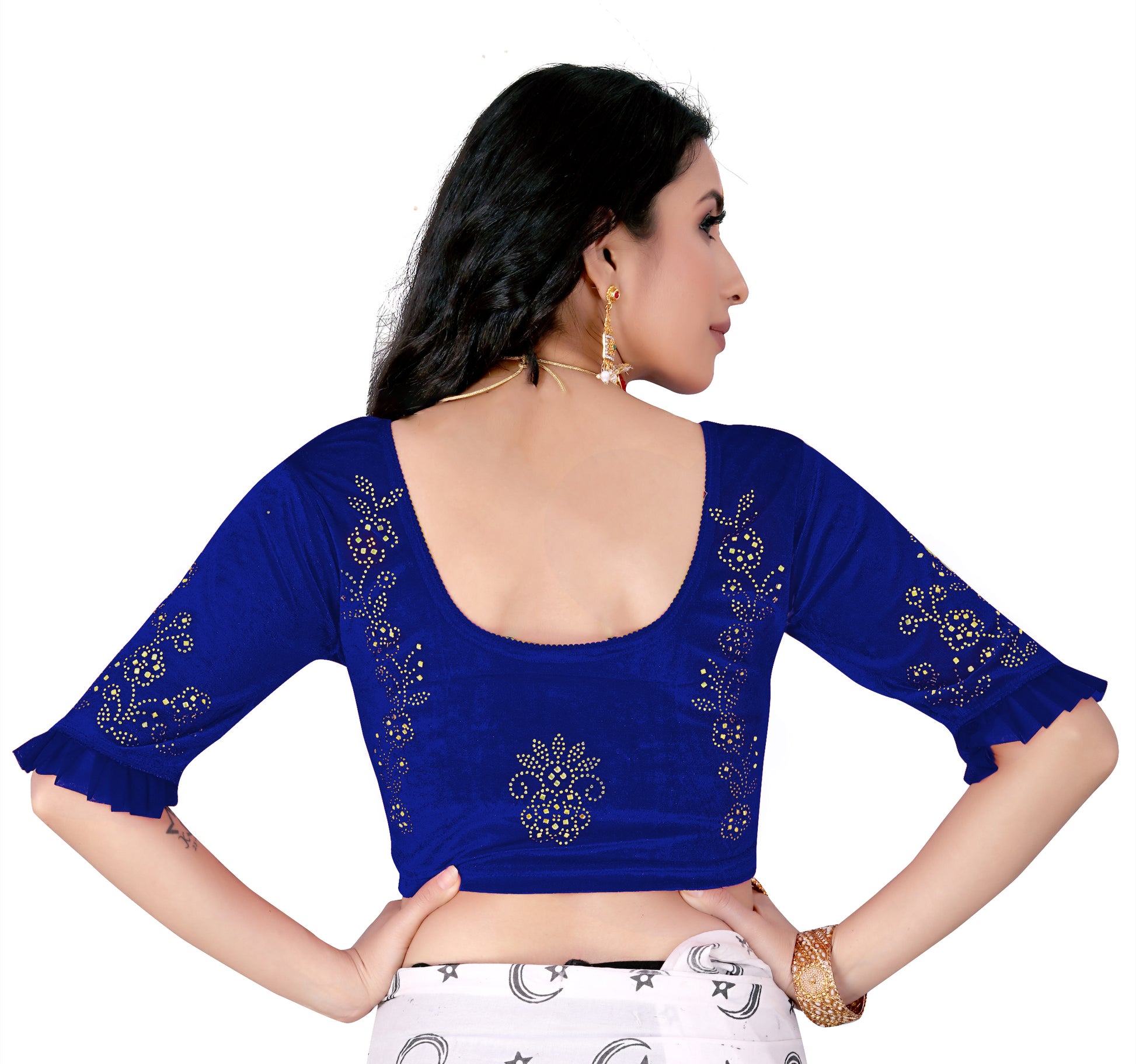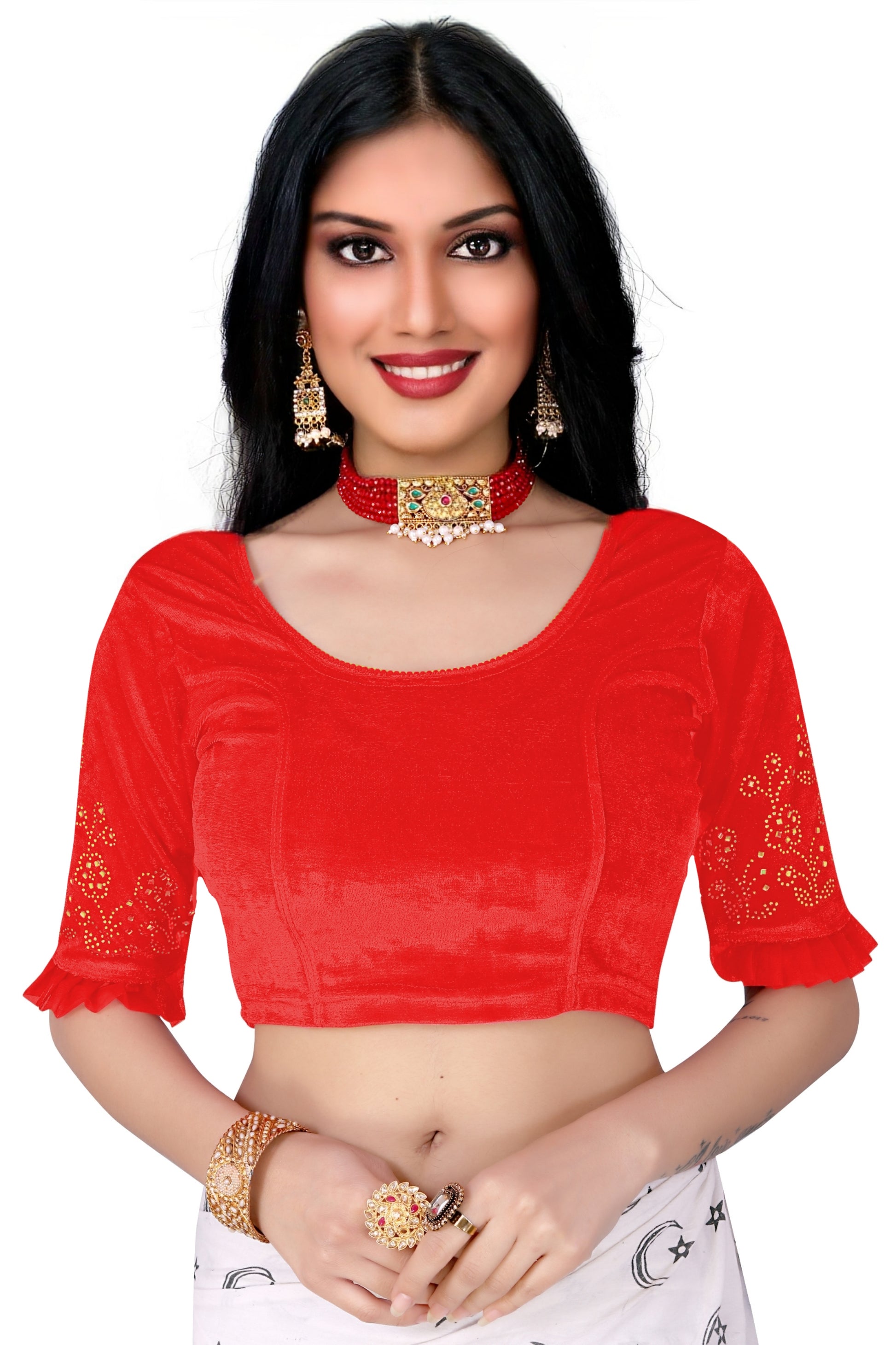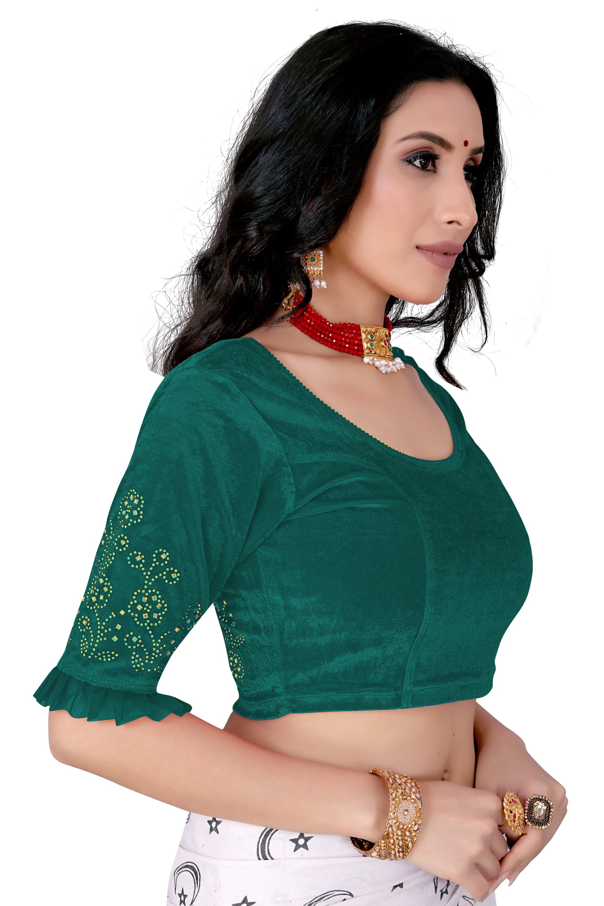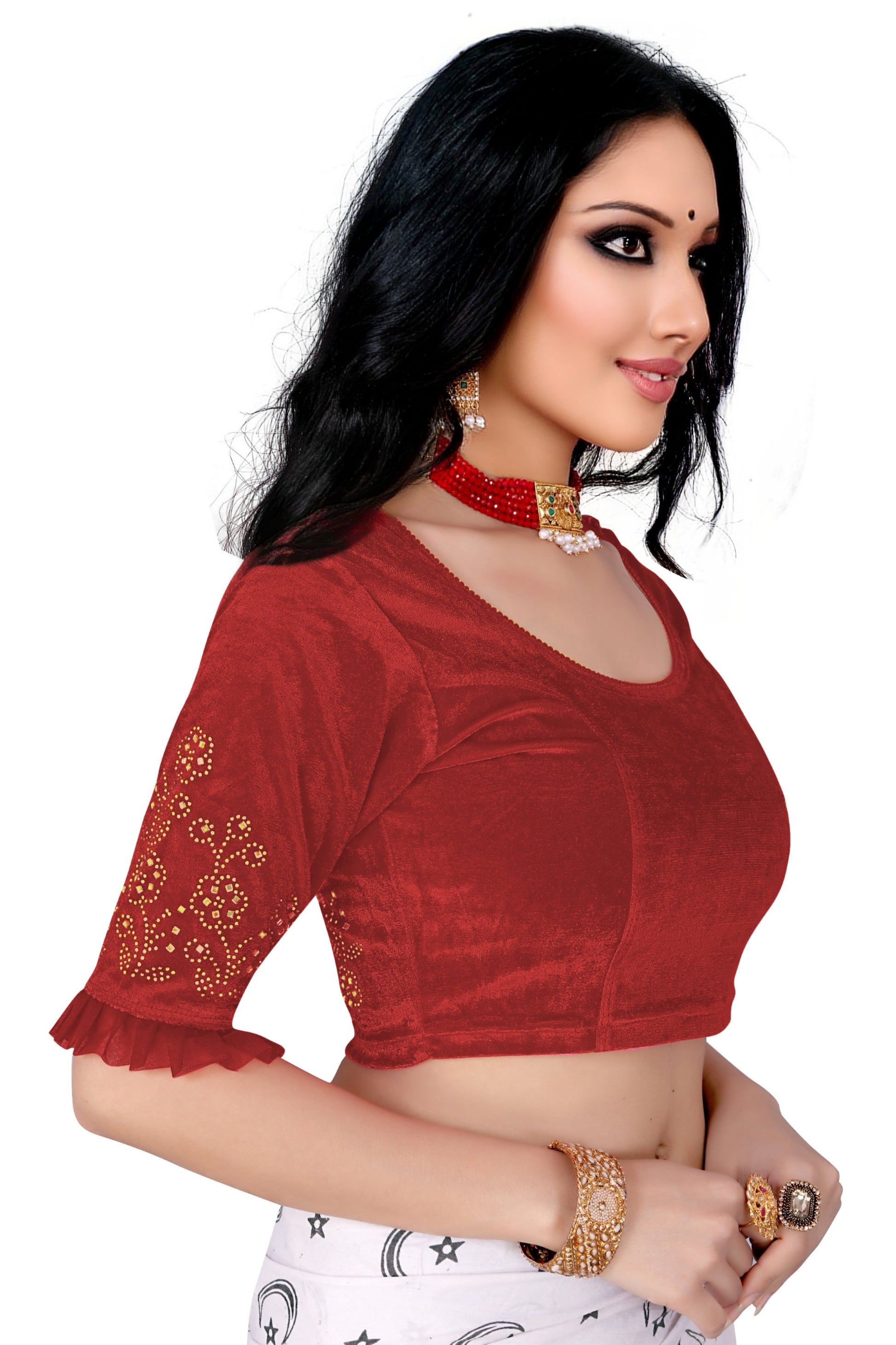 PU Fashion Fancy Velvet Blouse with Peacock and Floral Design | Readymade Saree Blouse for Women