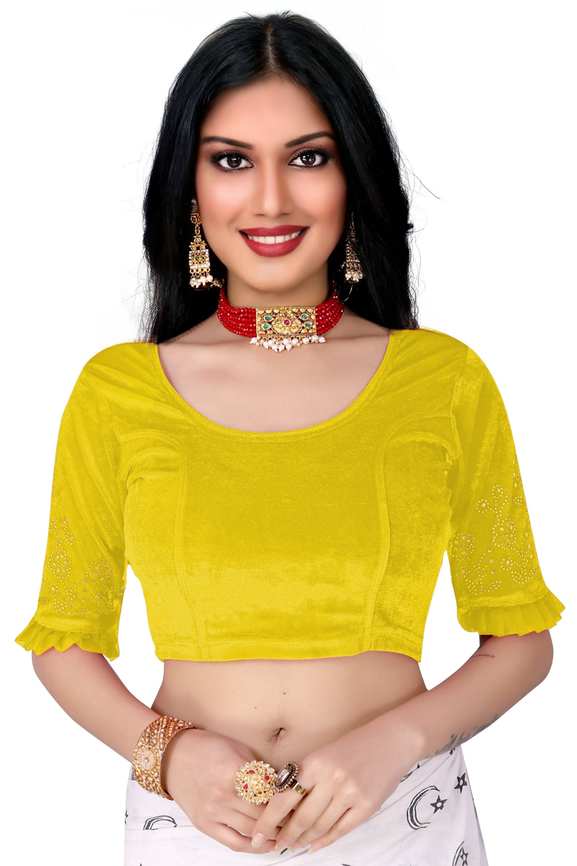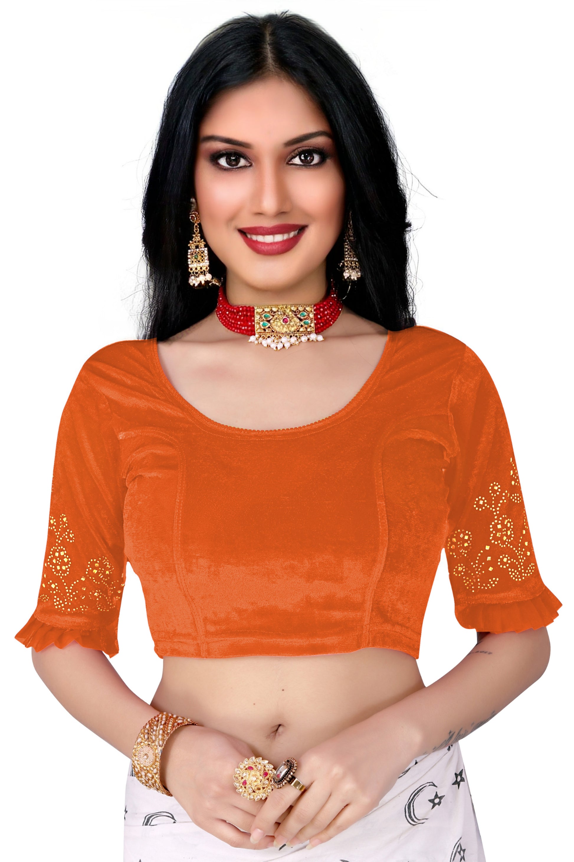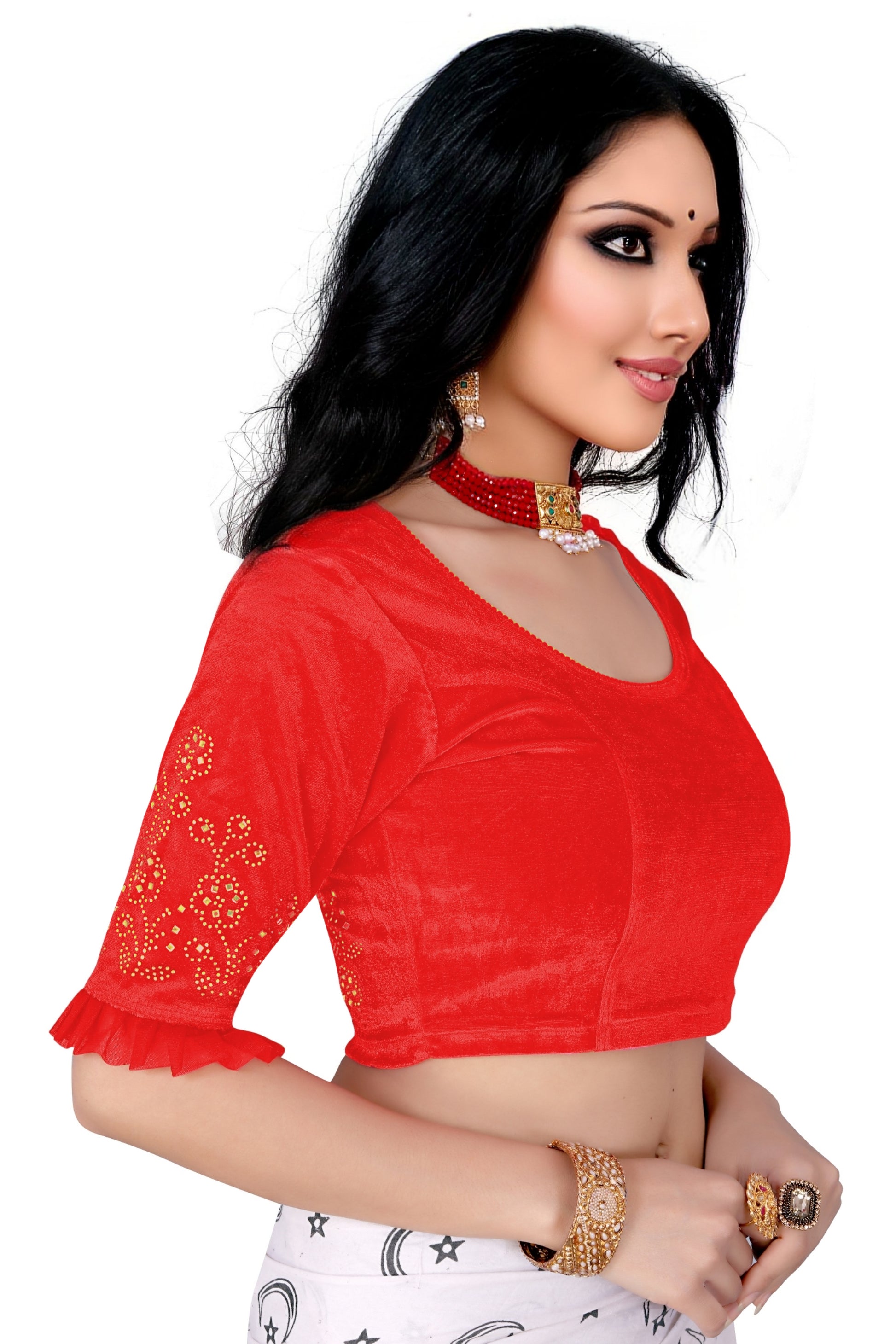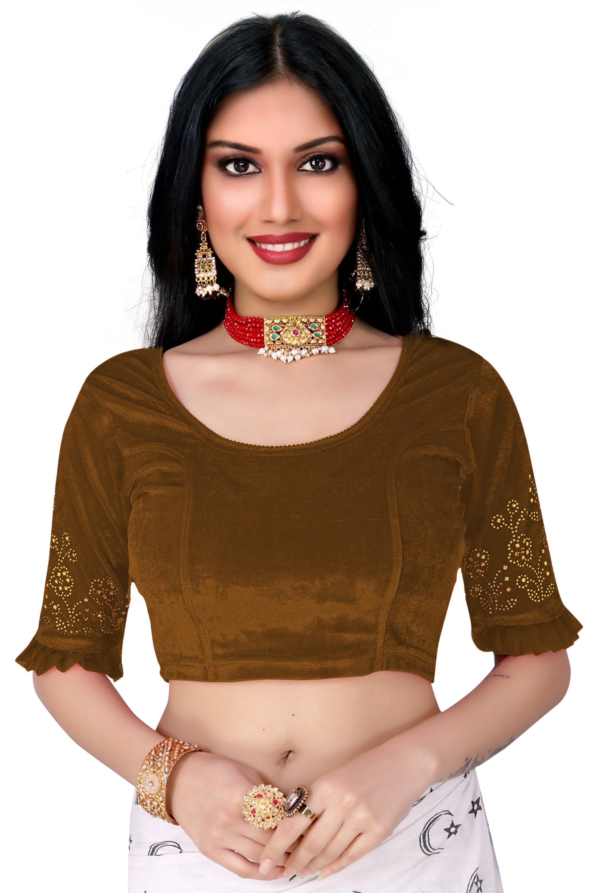 PU Fashion Fancy Velvet Blouse with Peacock and Floral Design | Readymade Saree Blouse for Women