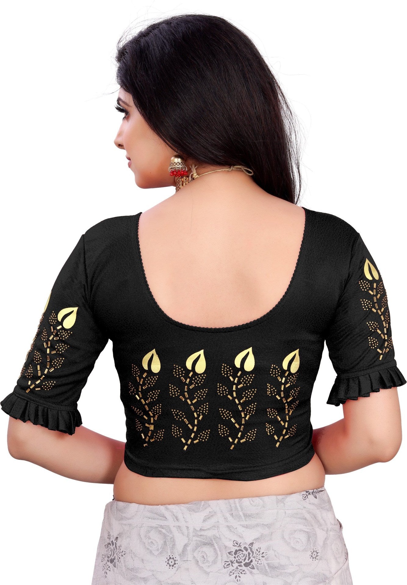 PU Fashion Women's Black Lycra Blouse with Golden Print | Readymade Stretchable Blouse