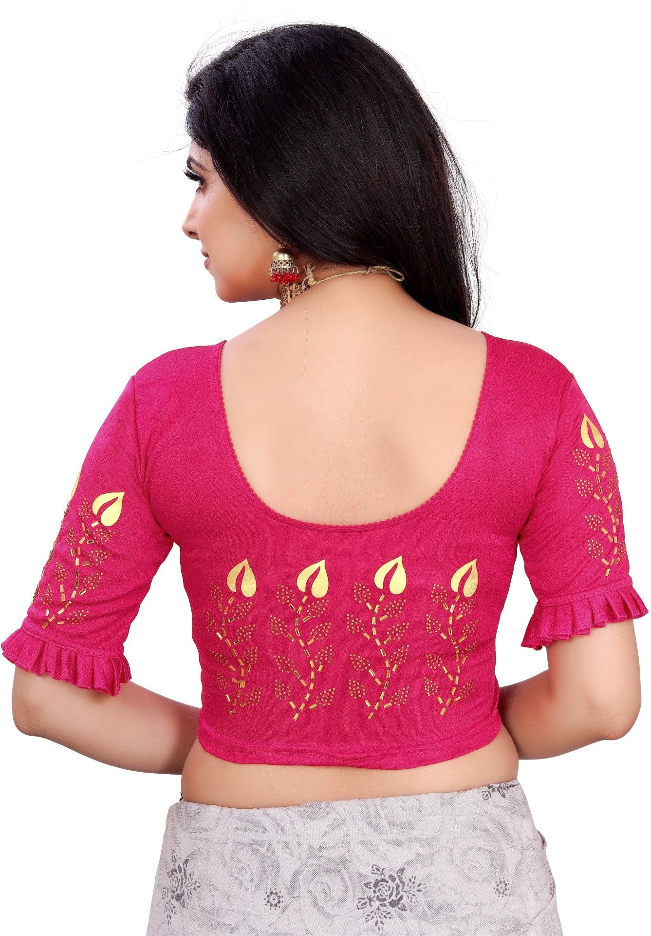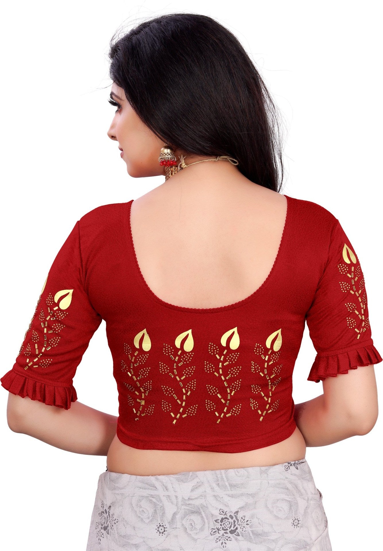 PU Fashion Fancy Velvet Blouse with Peacock and Floral Design | Readymade Saree Blouse for Women