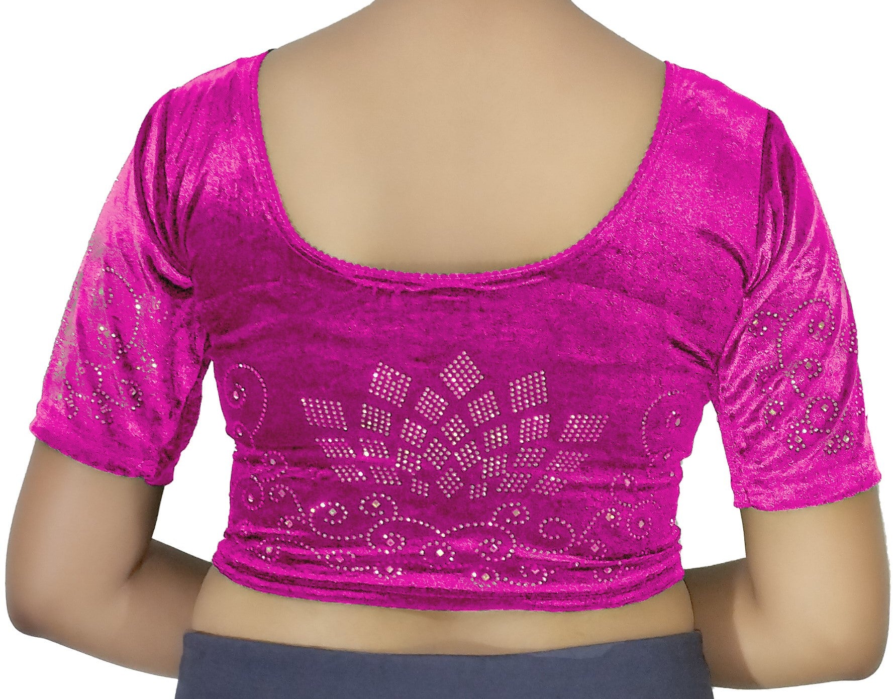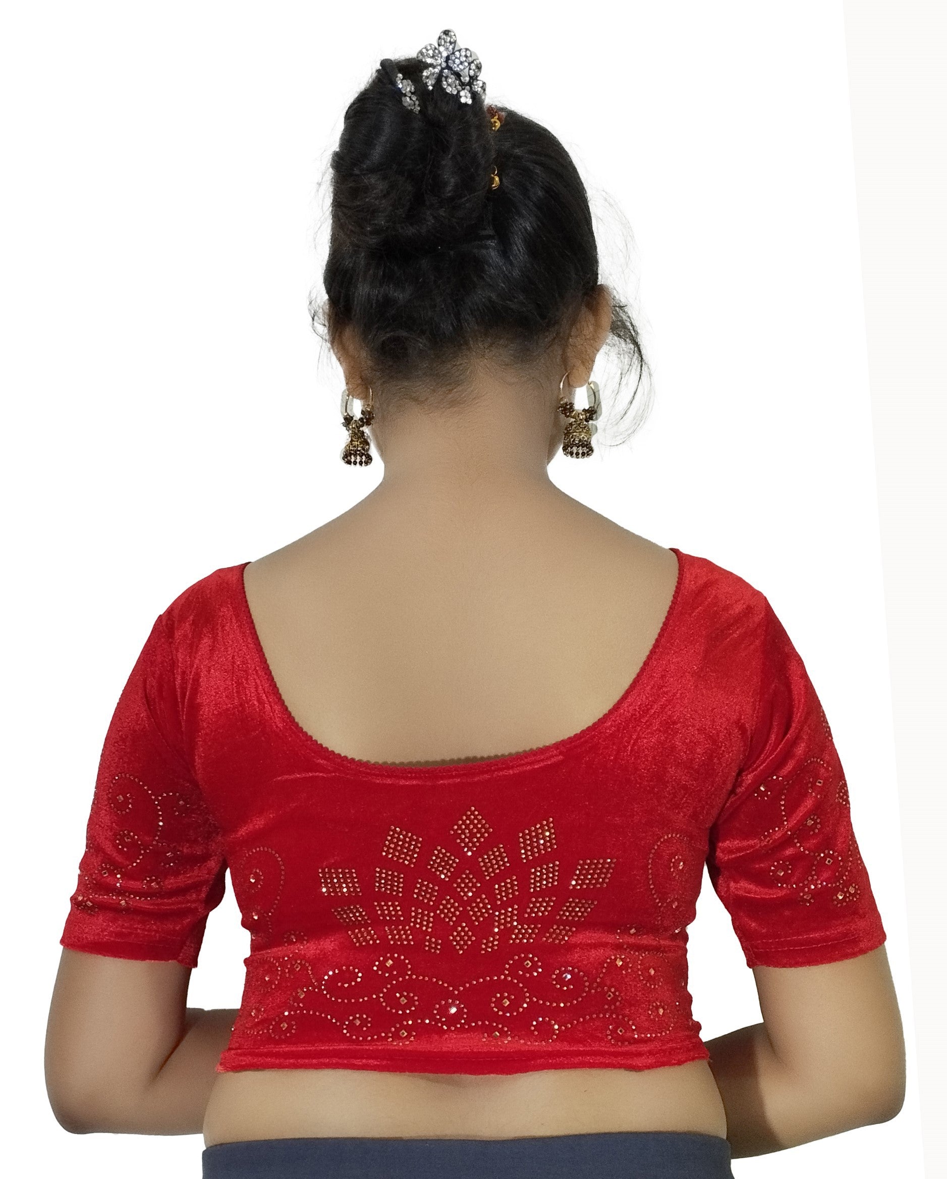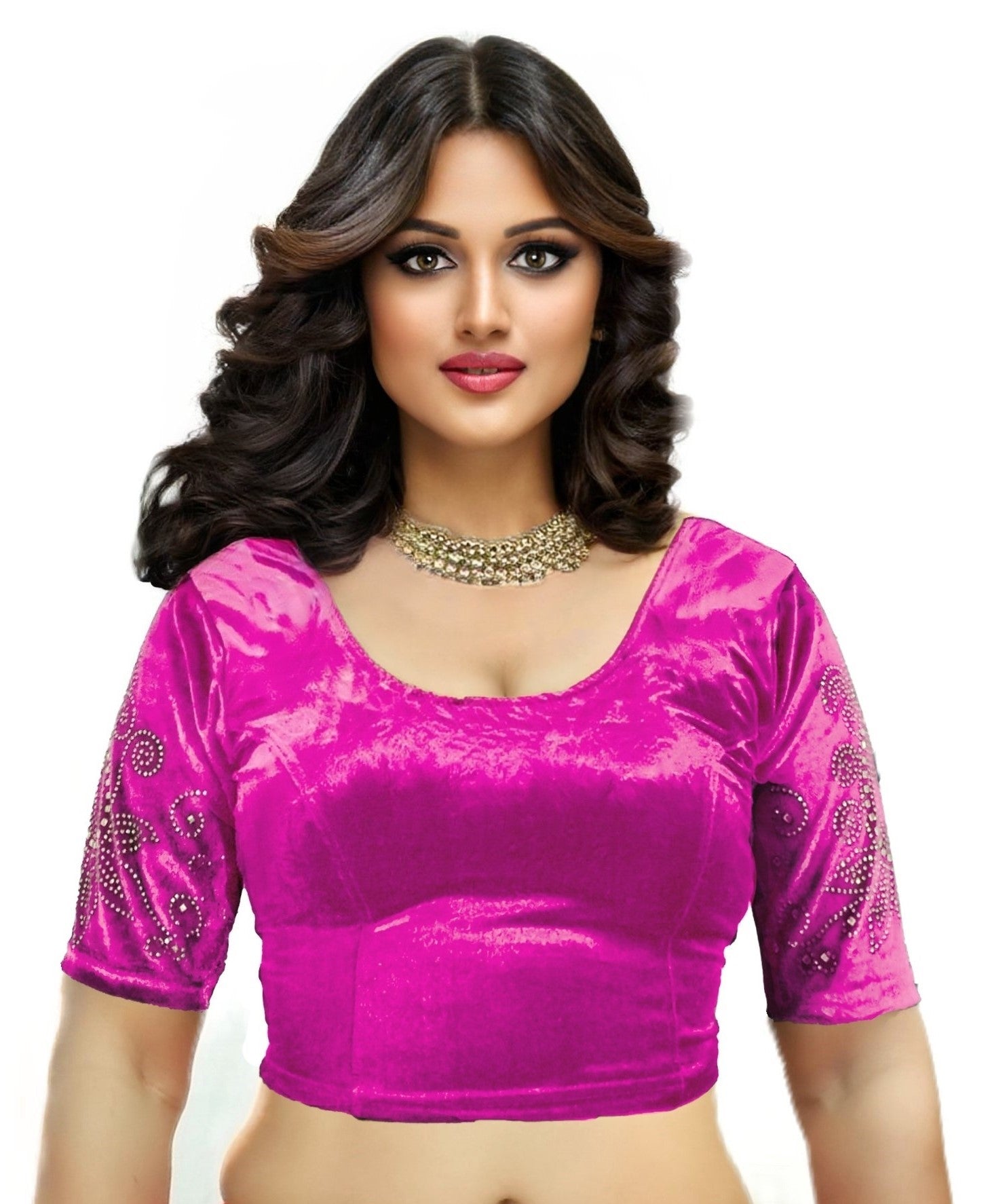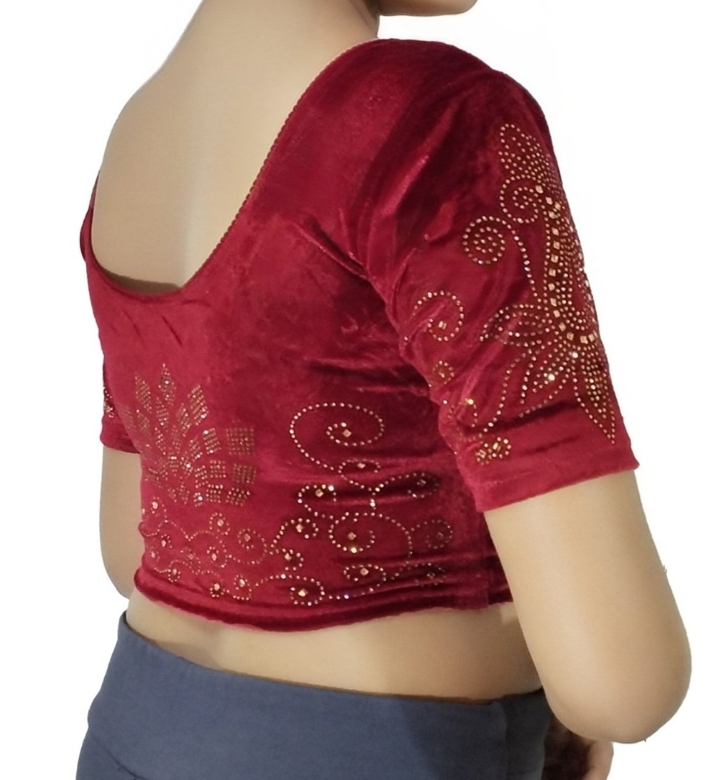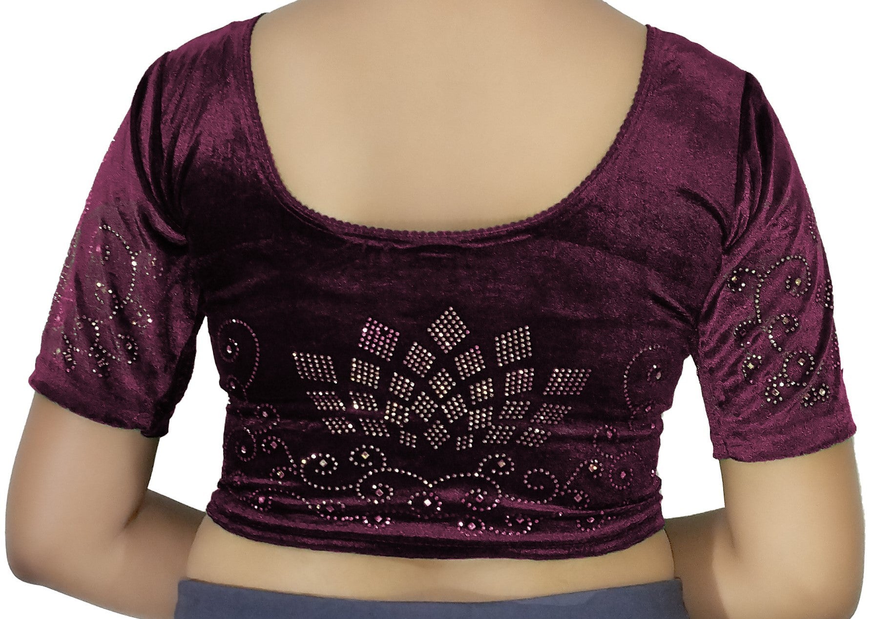 PU Fashion Women's Fancy Velvet Blouse with Stone Work | Stylish Readymade Saree Blouse for Party & Wedding