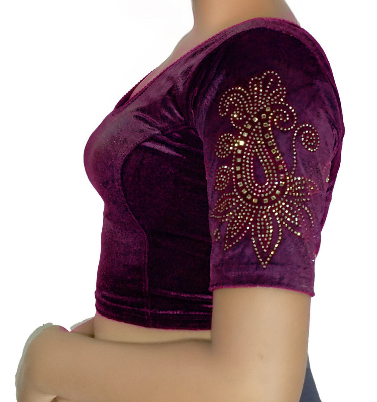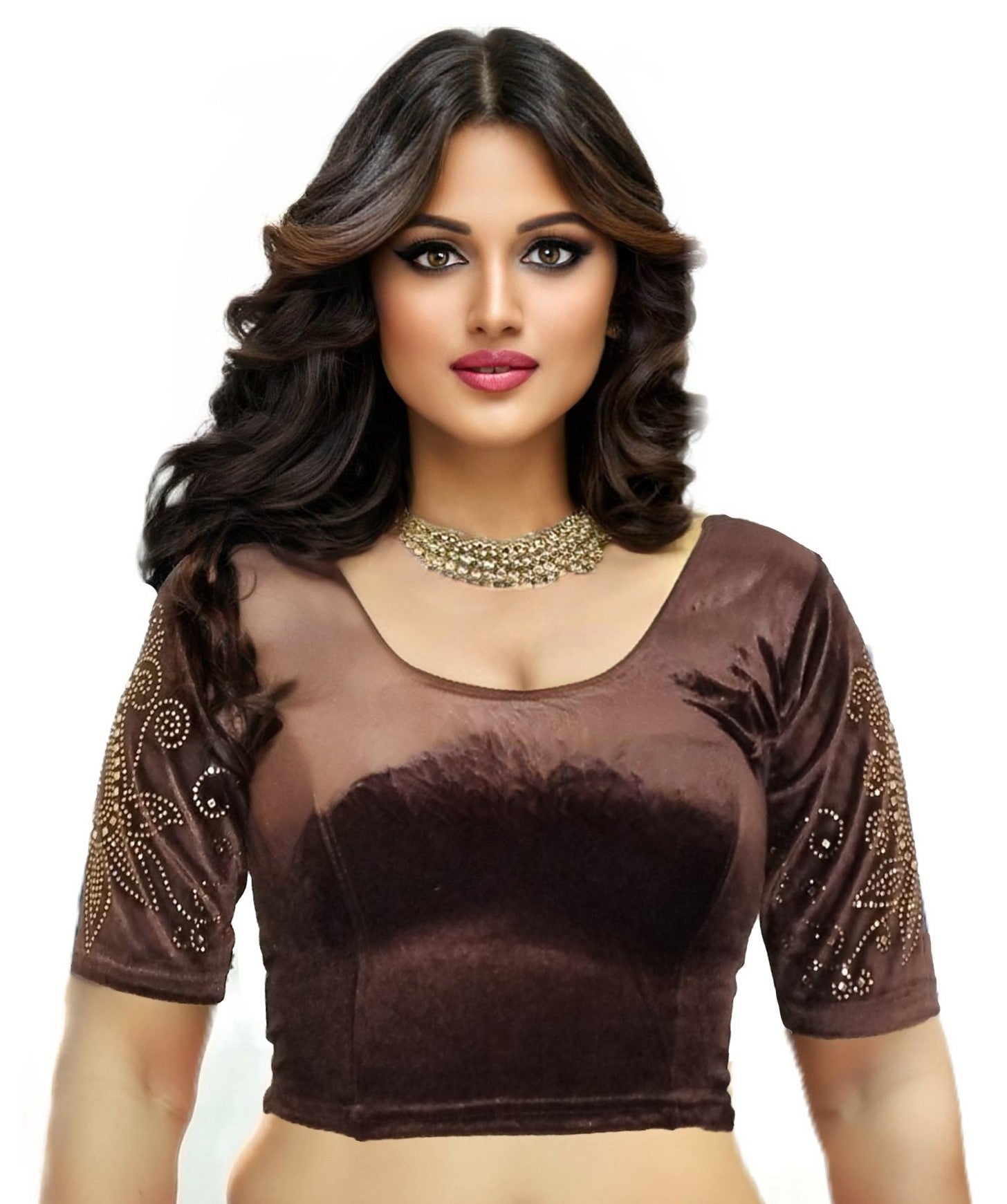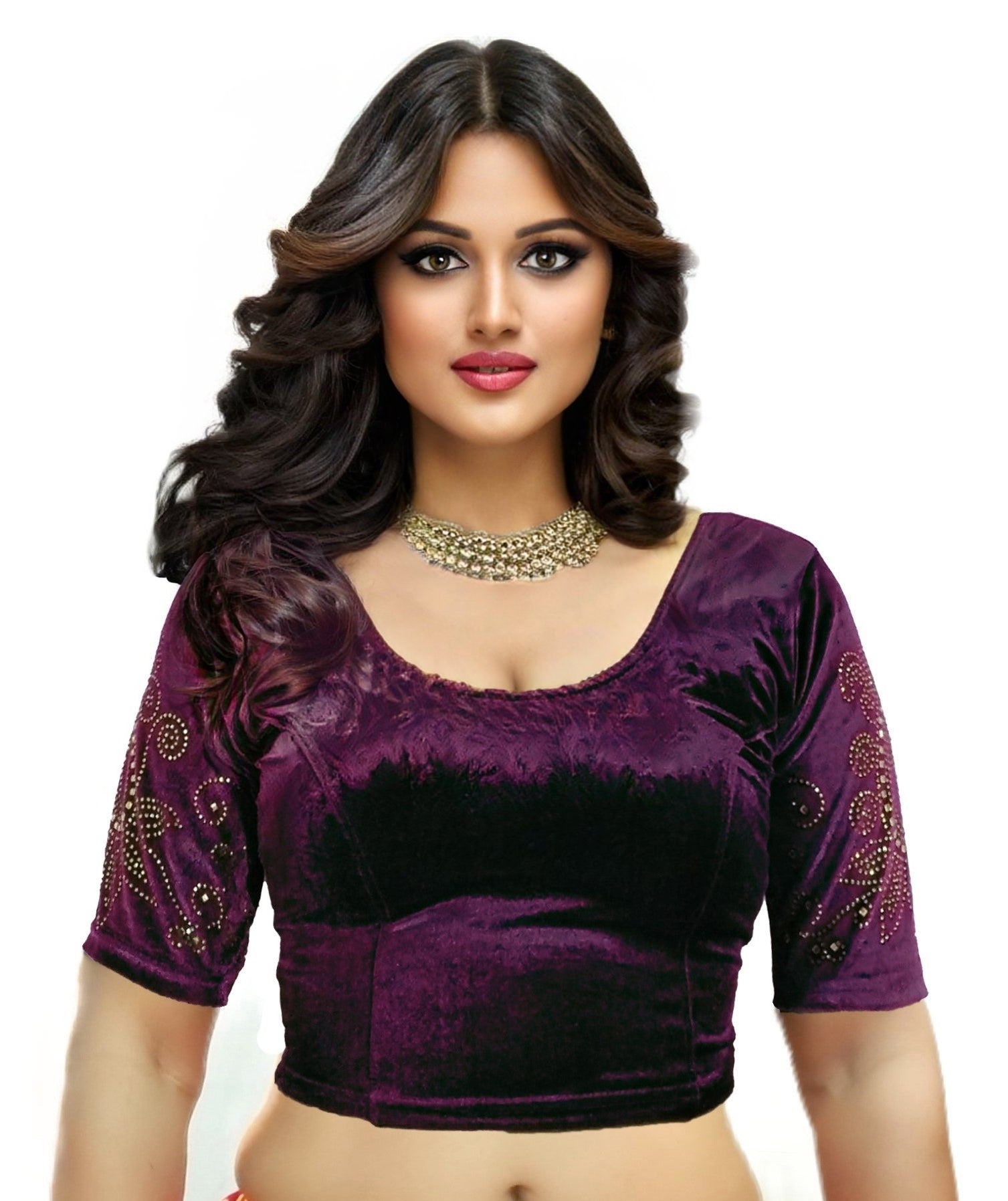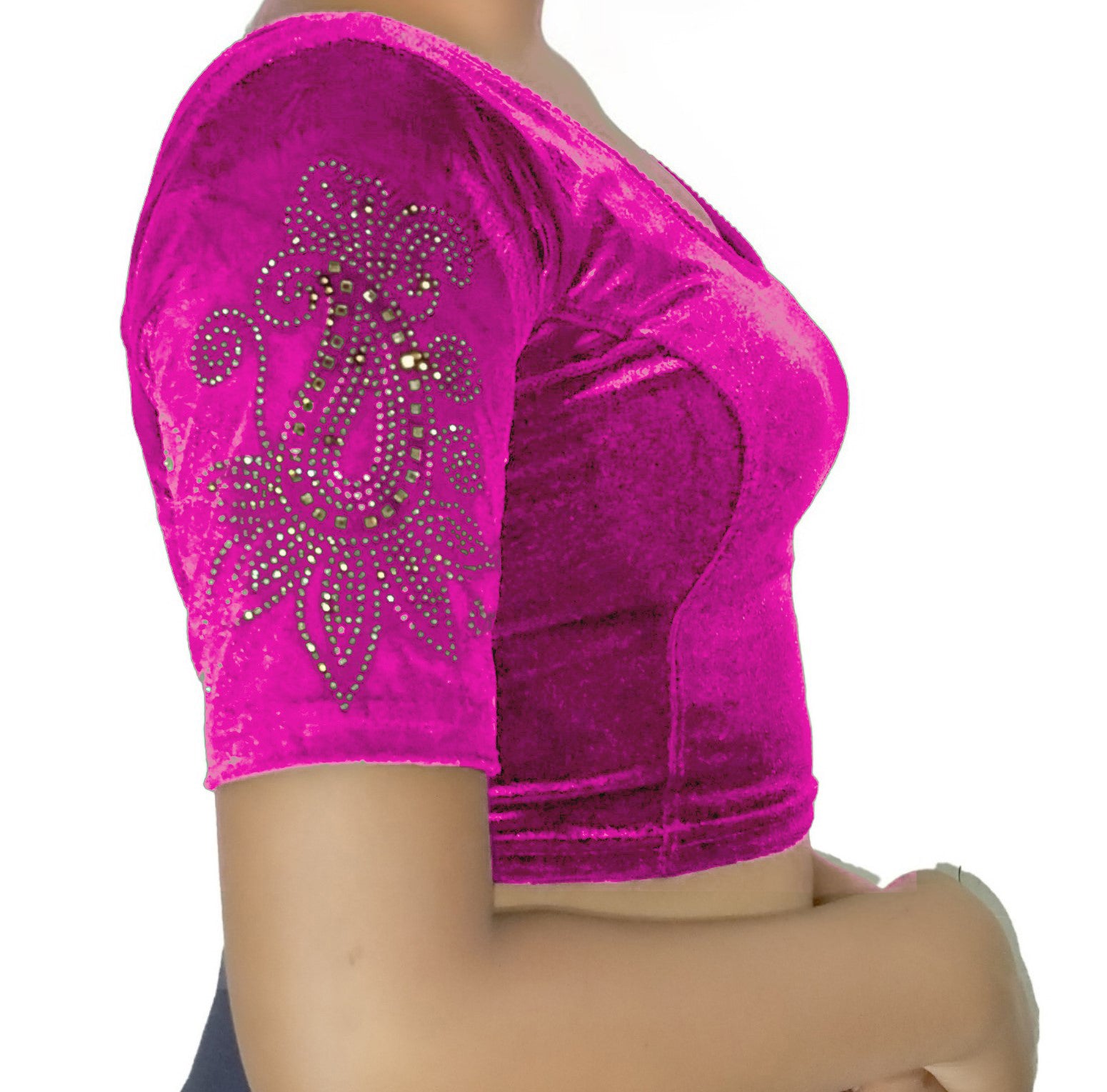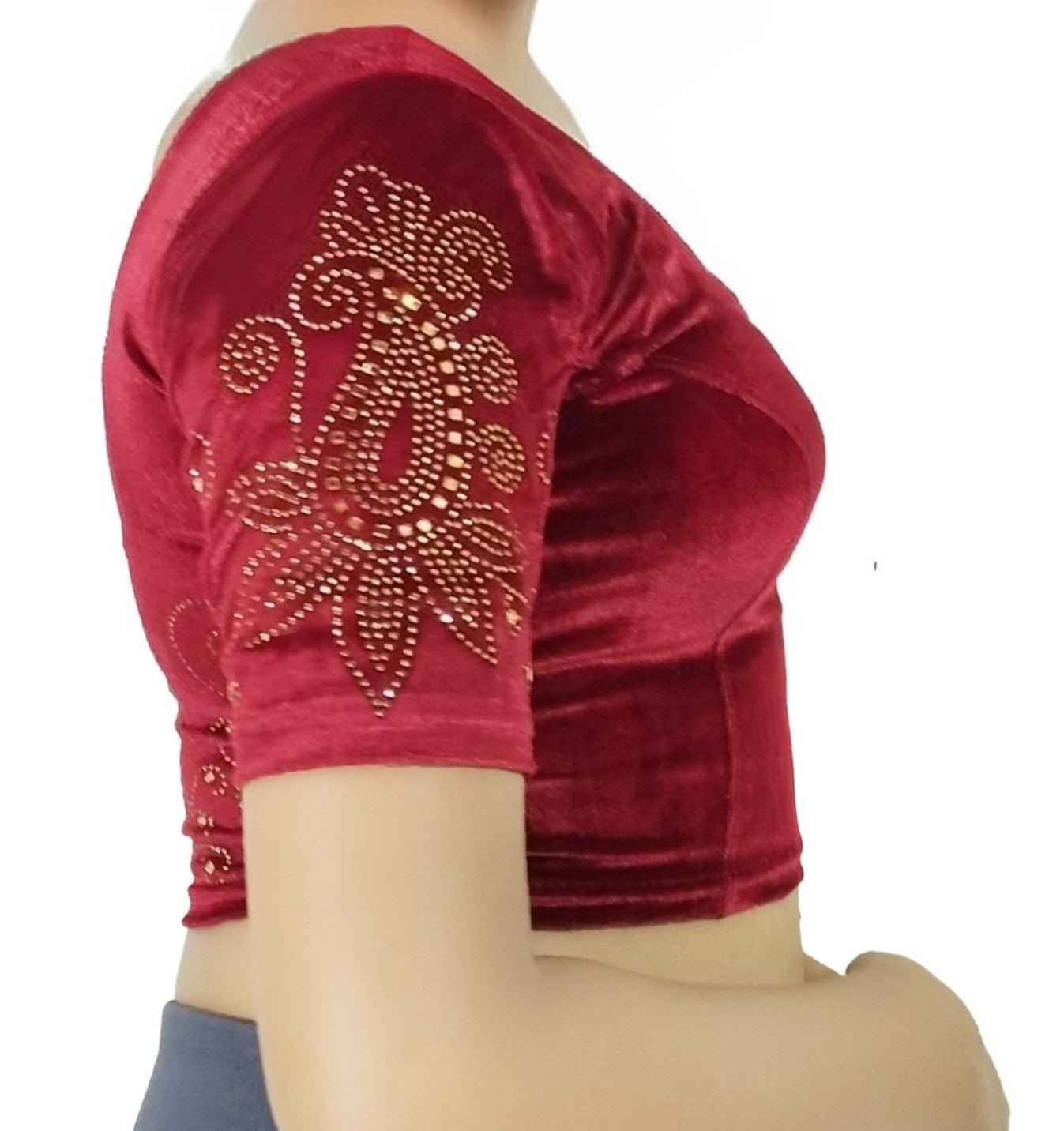 PU Fashion Women's Fancy Velvet Blouse with Stone Work | Stylish Readymade Saree Blouse for Party & Wedding