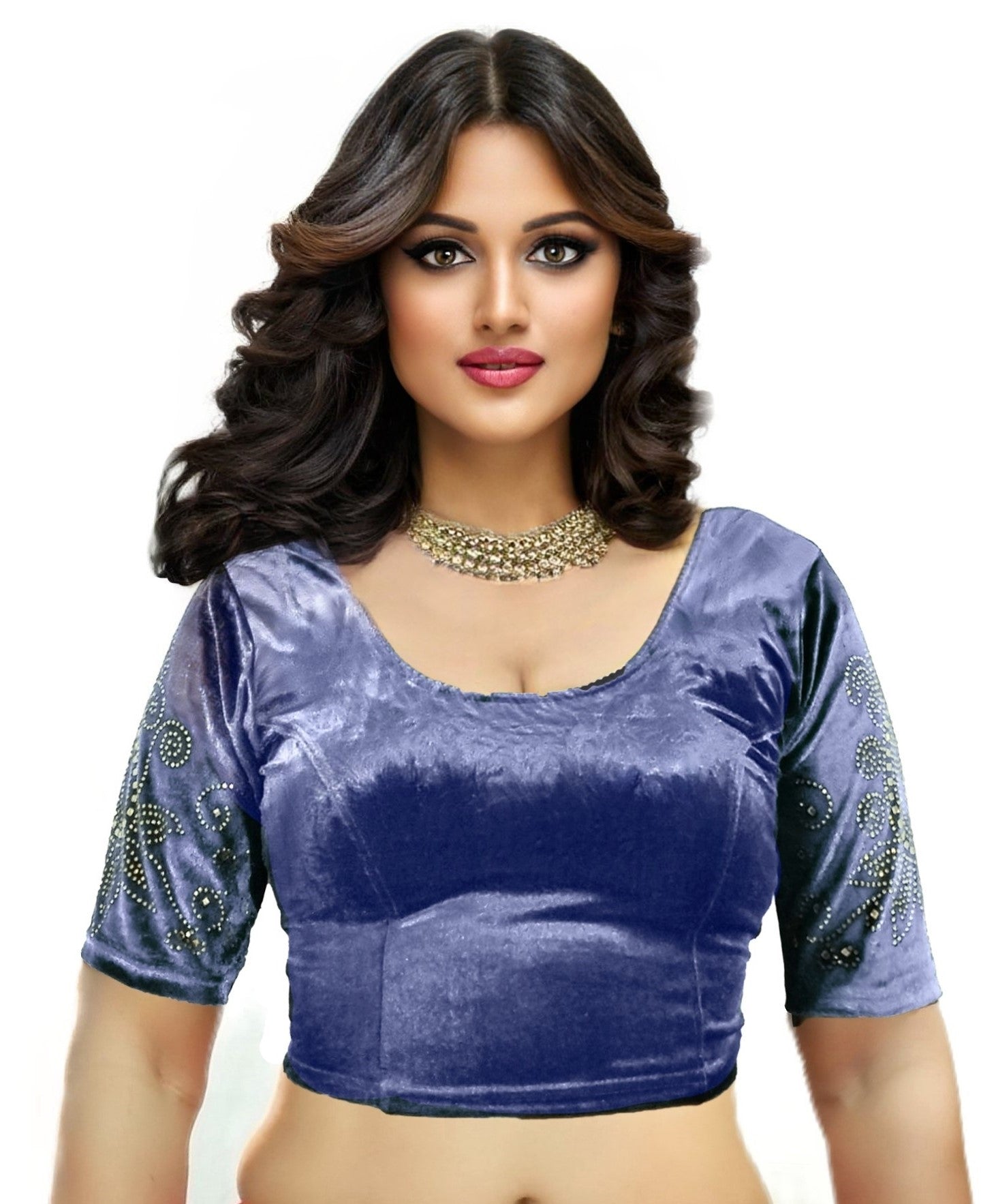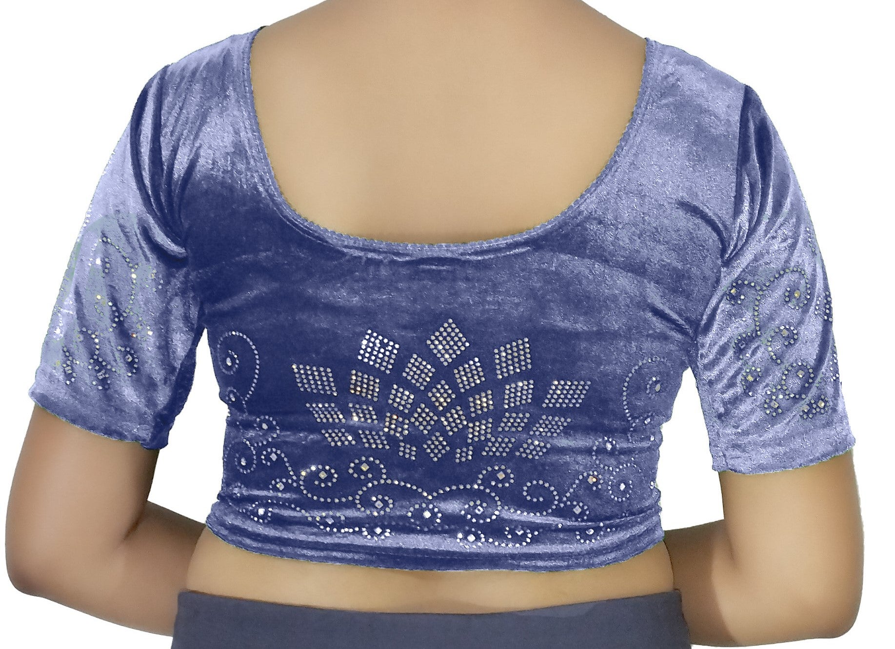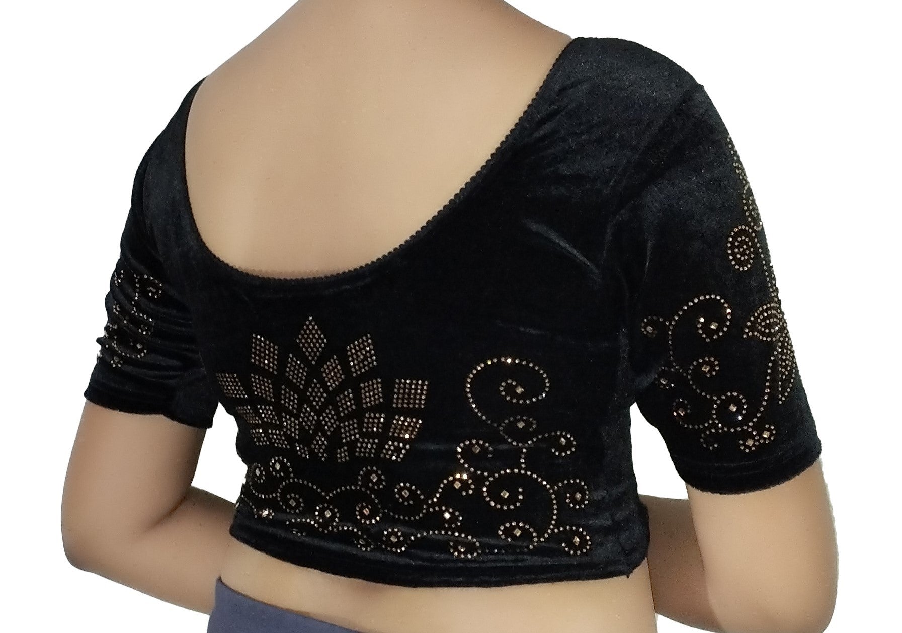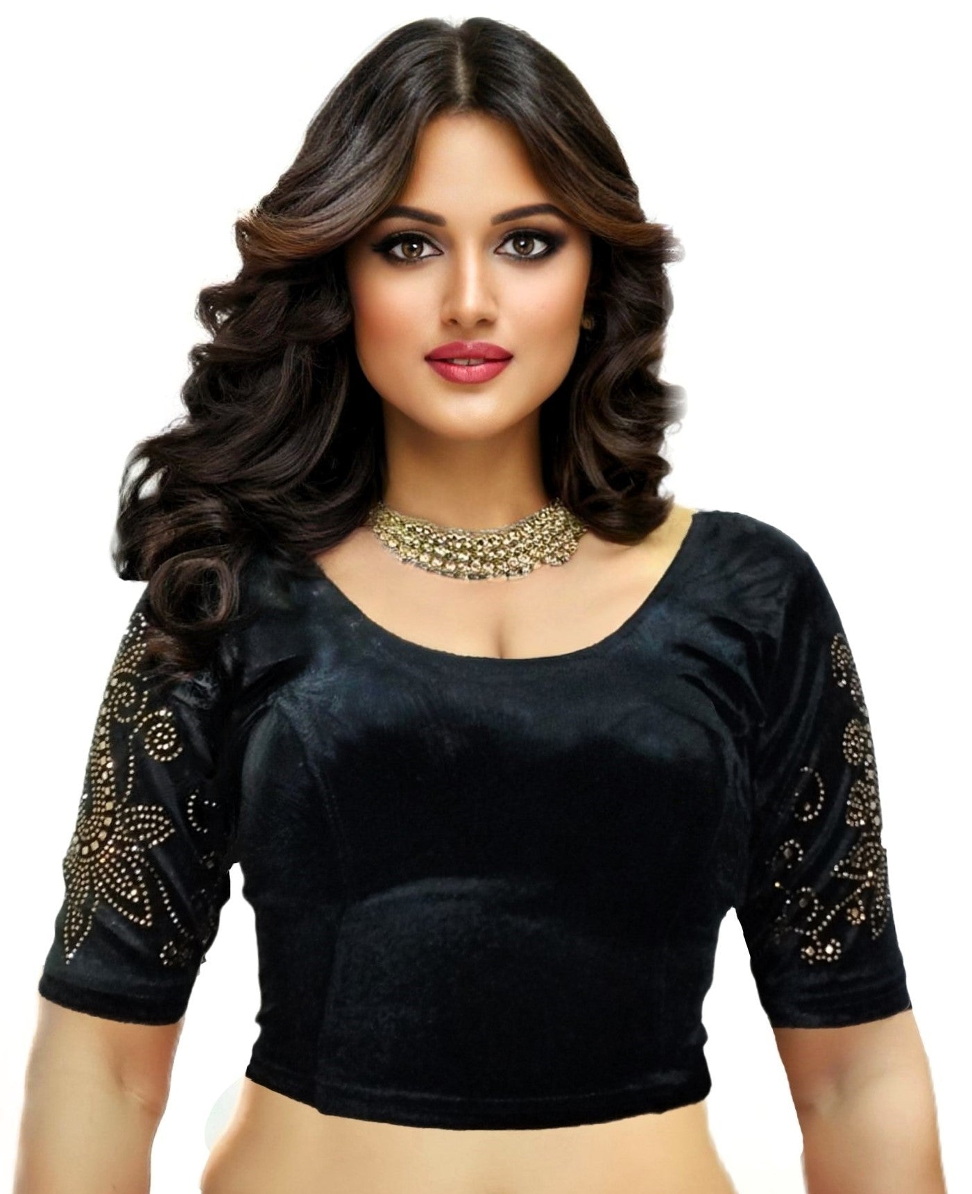 PU Fashion Women's Fancy Velvet Blouse with Stone Work | Stylish Readymade Saree Blouse for Party & Wedding