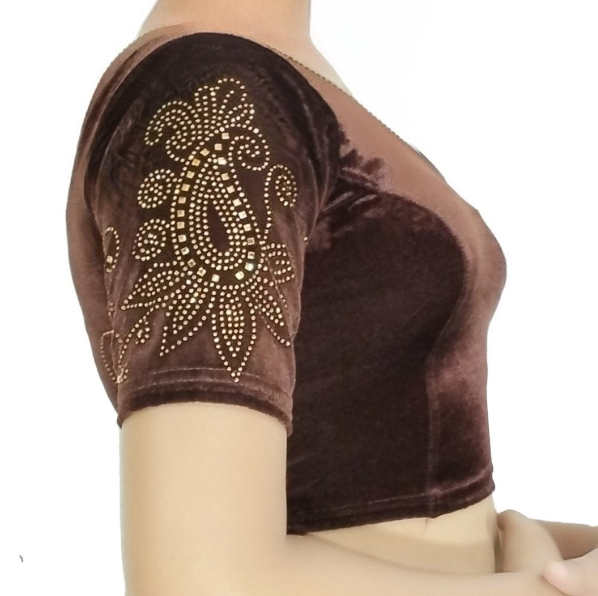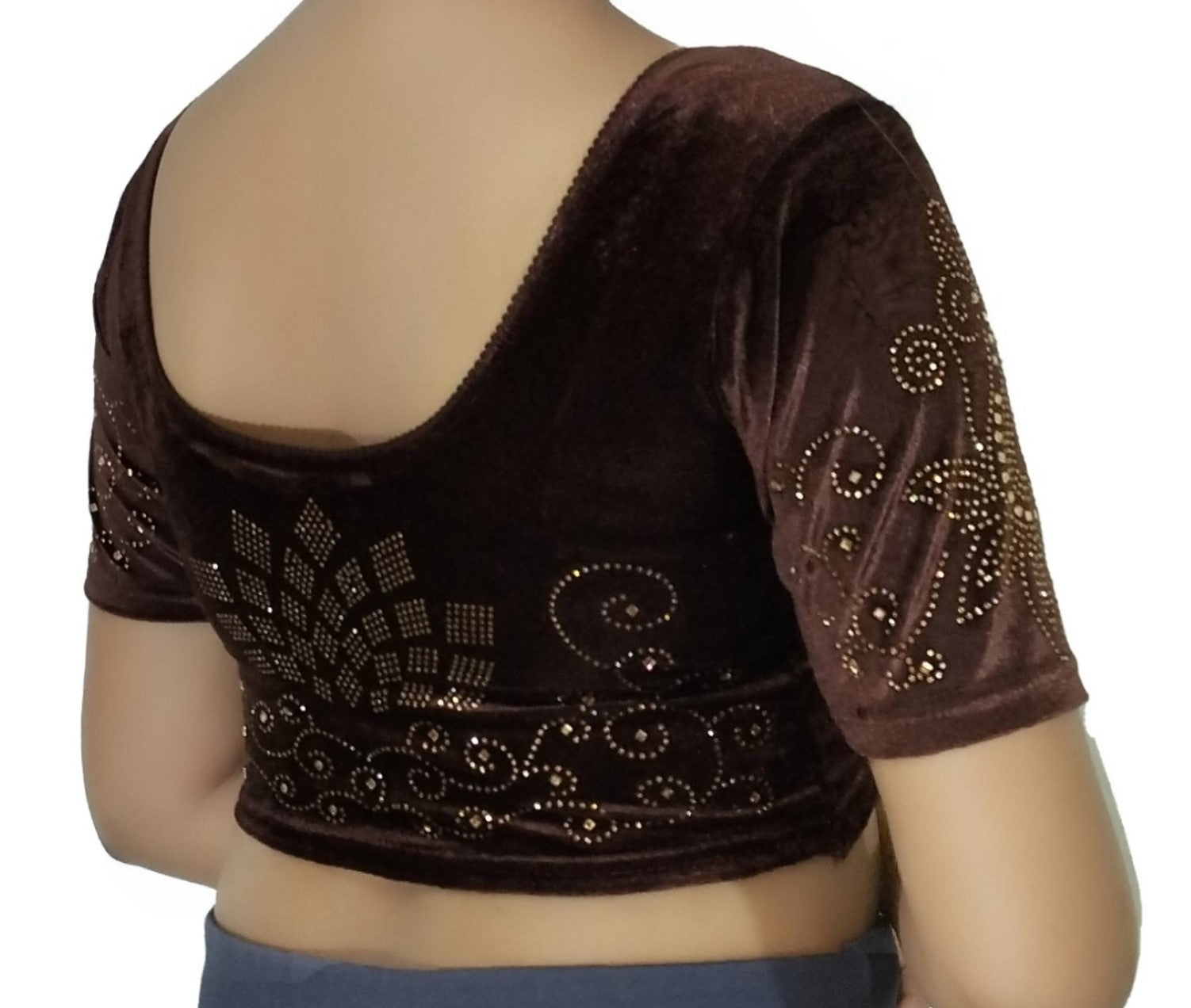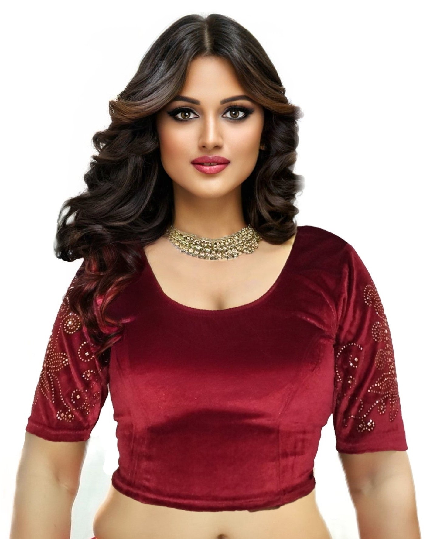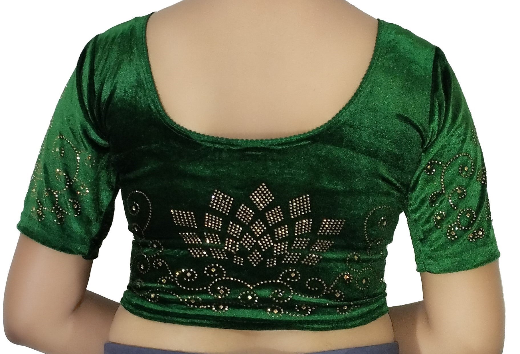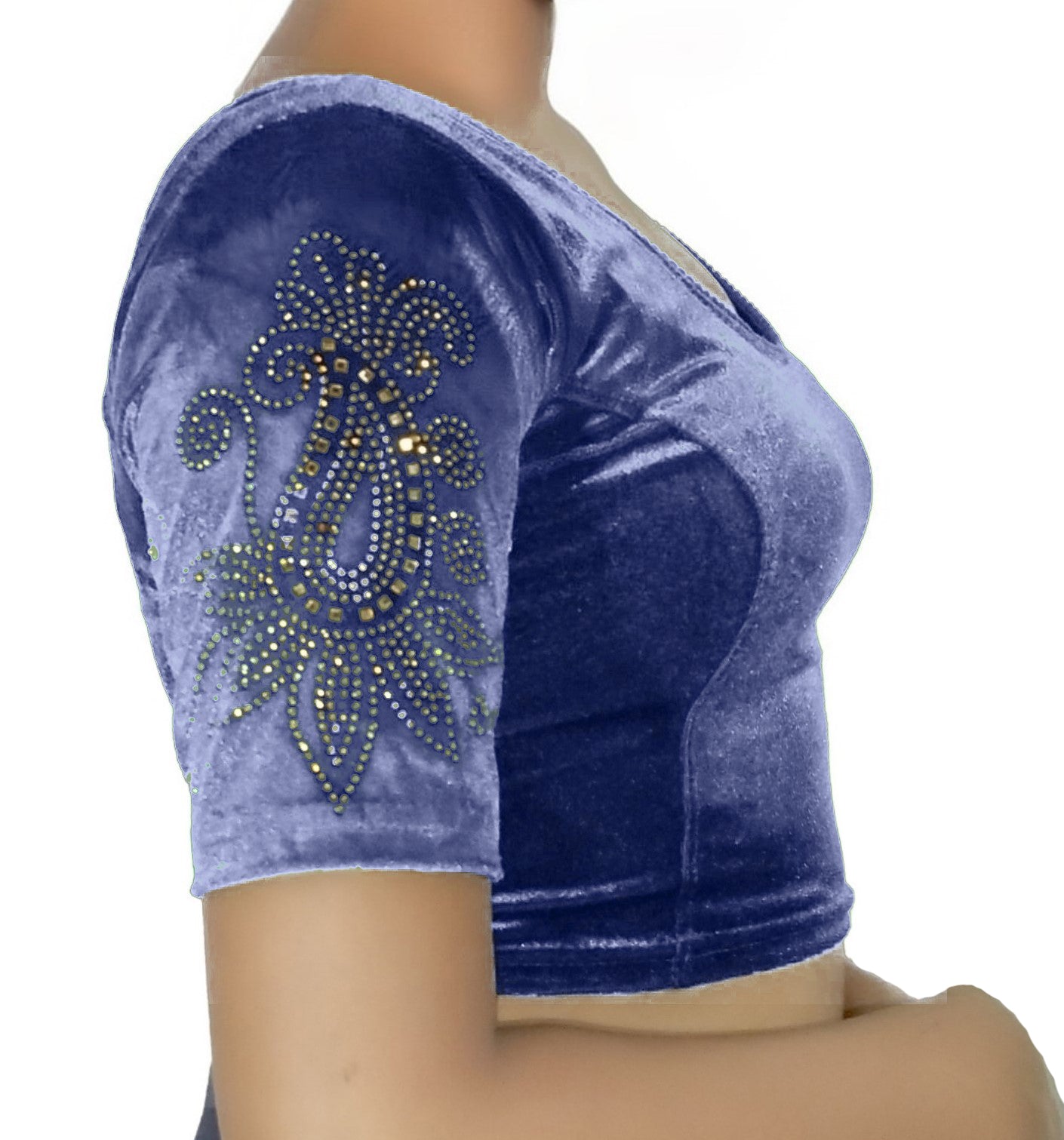 PU Fashion Women's Fancy Velvet Blouse with Stone Work | Stylish Readymade Saree Blouse for Party & Wedding