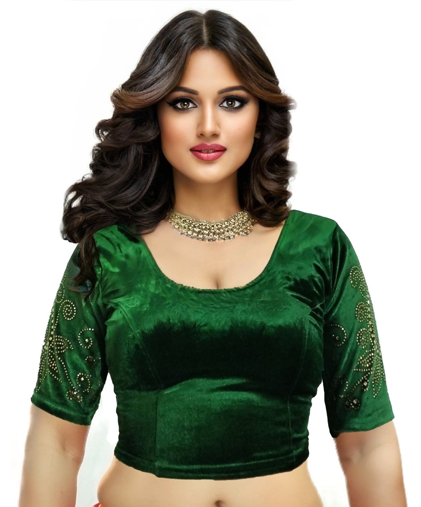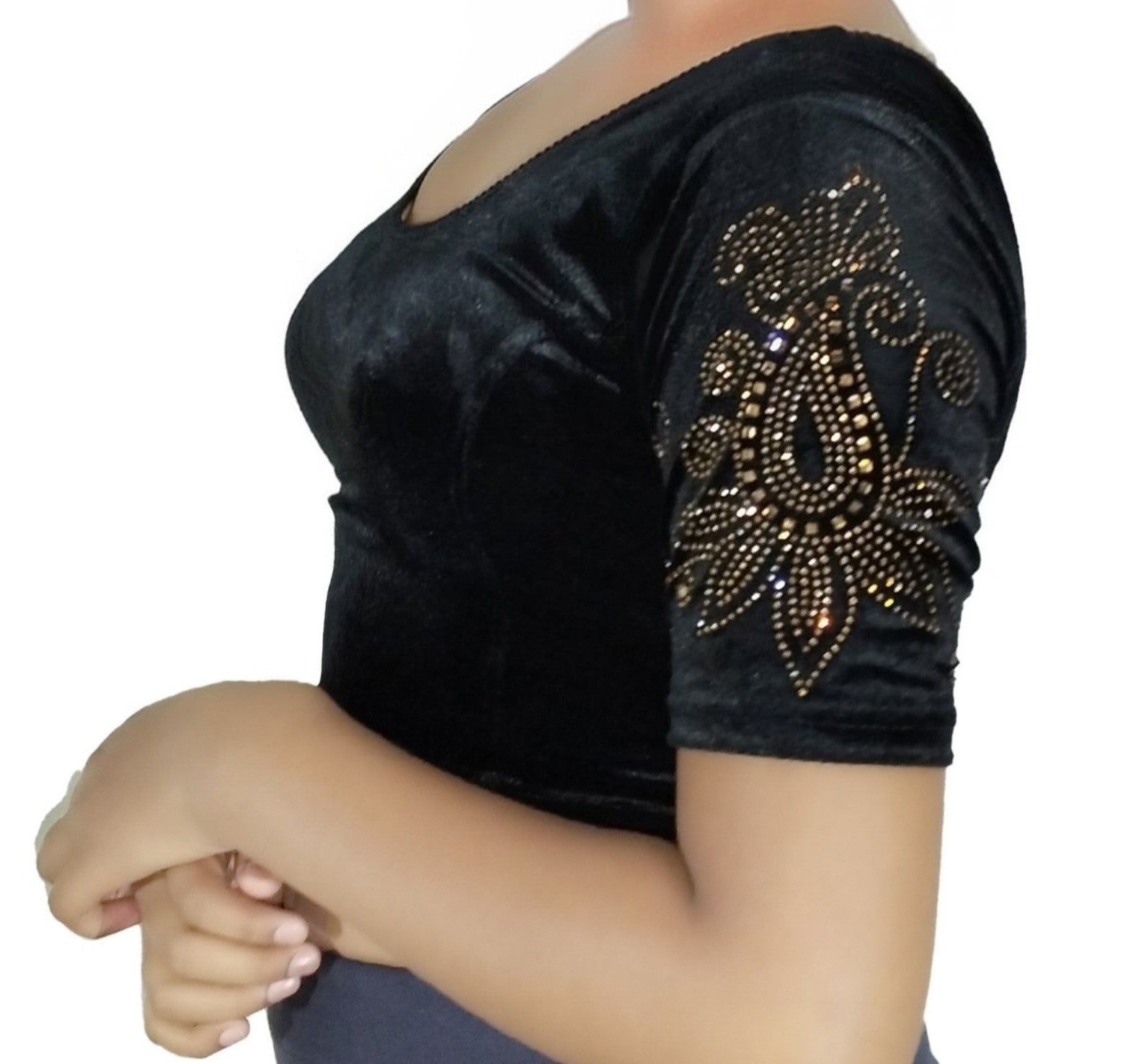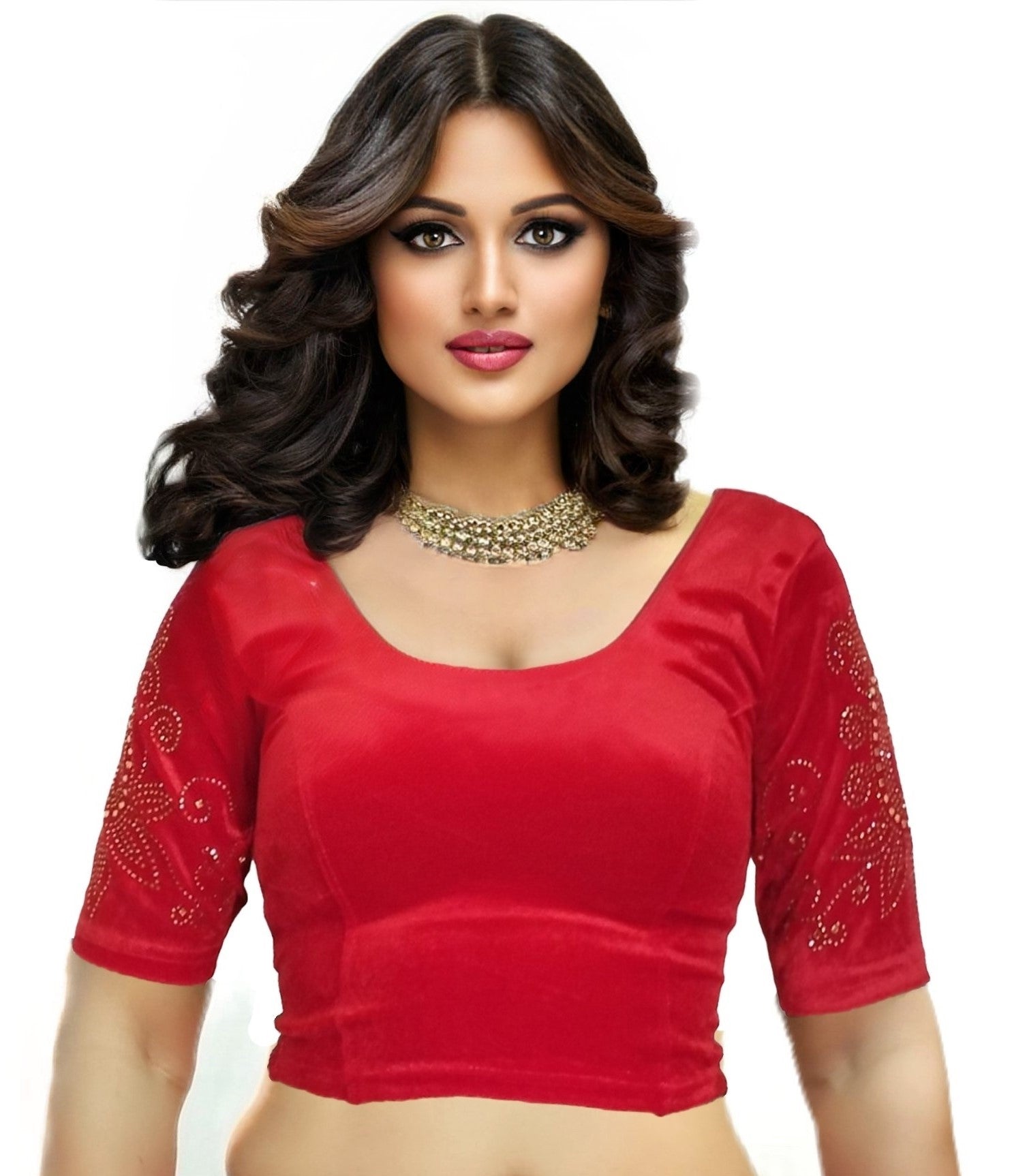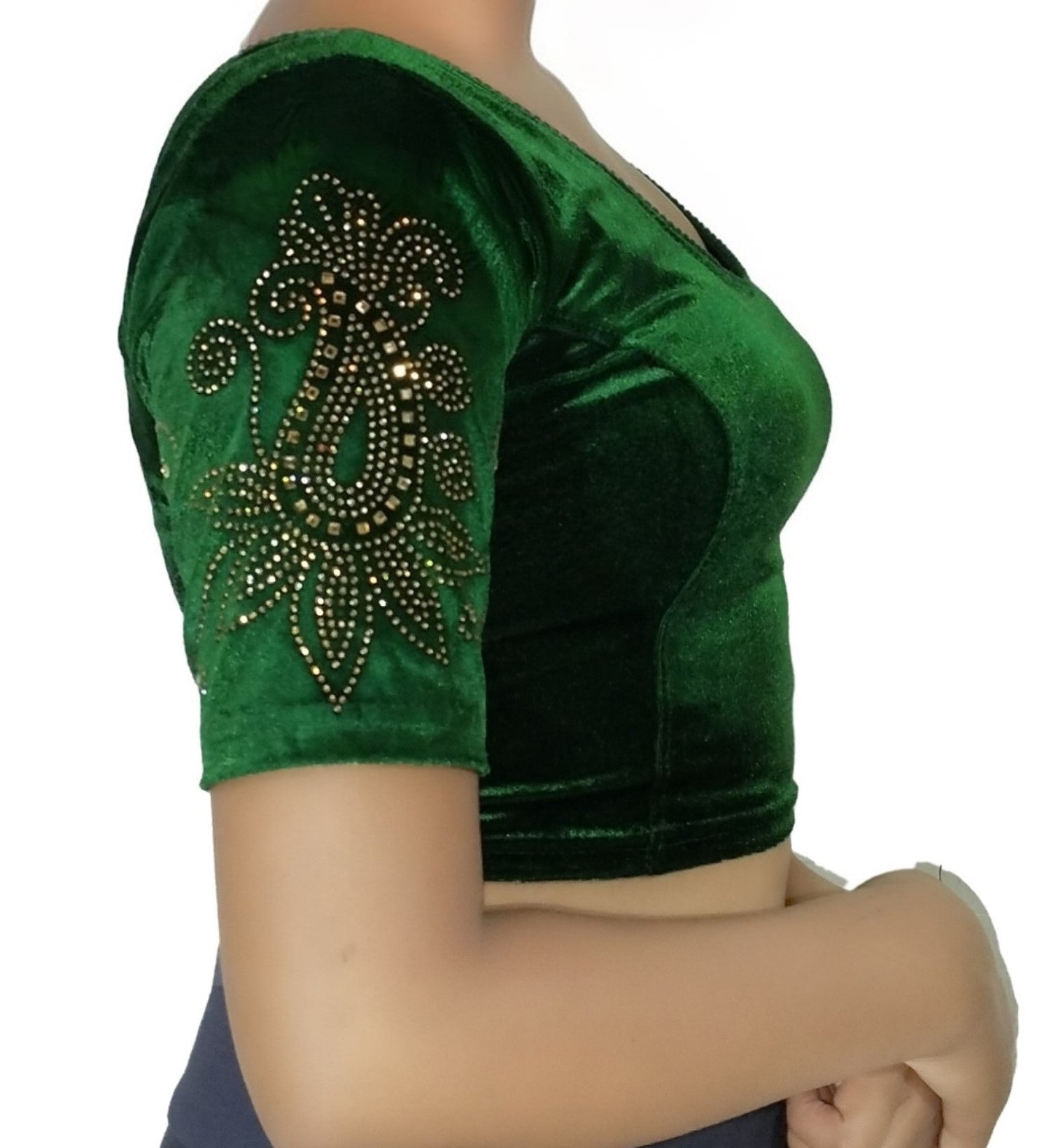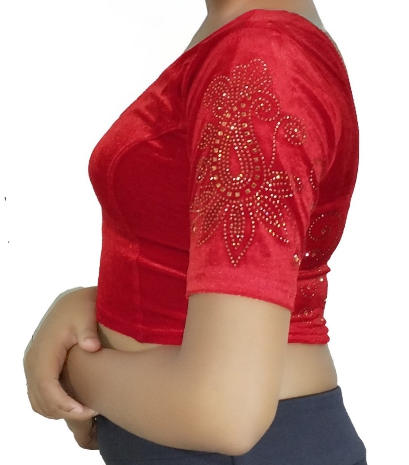 PU Fashion Women's Fancy Velvet Blouse with Stone Work | Stylish Readymade Saree Blouse for Party & Wedding