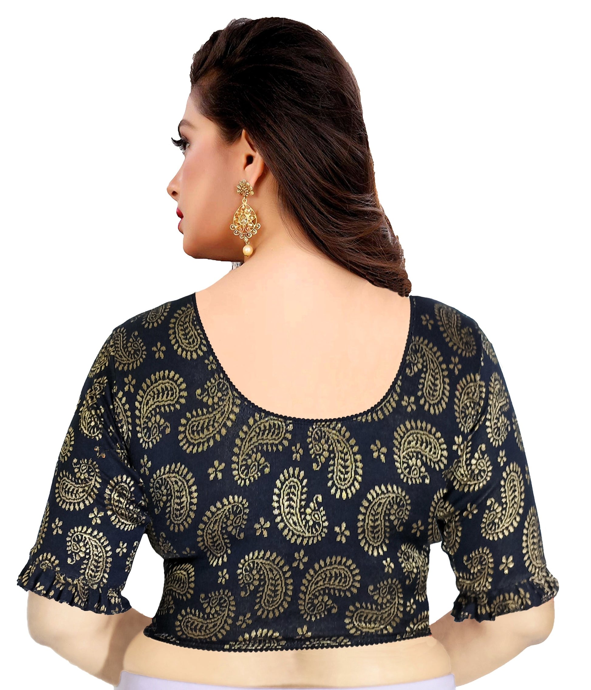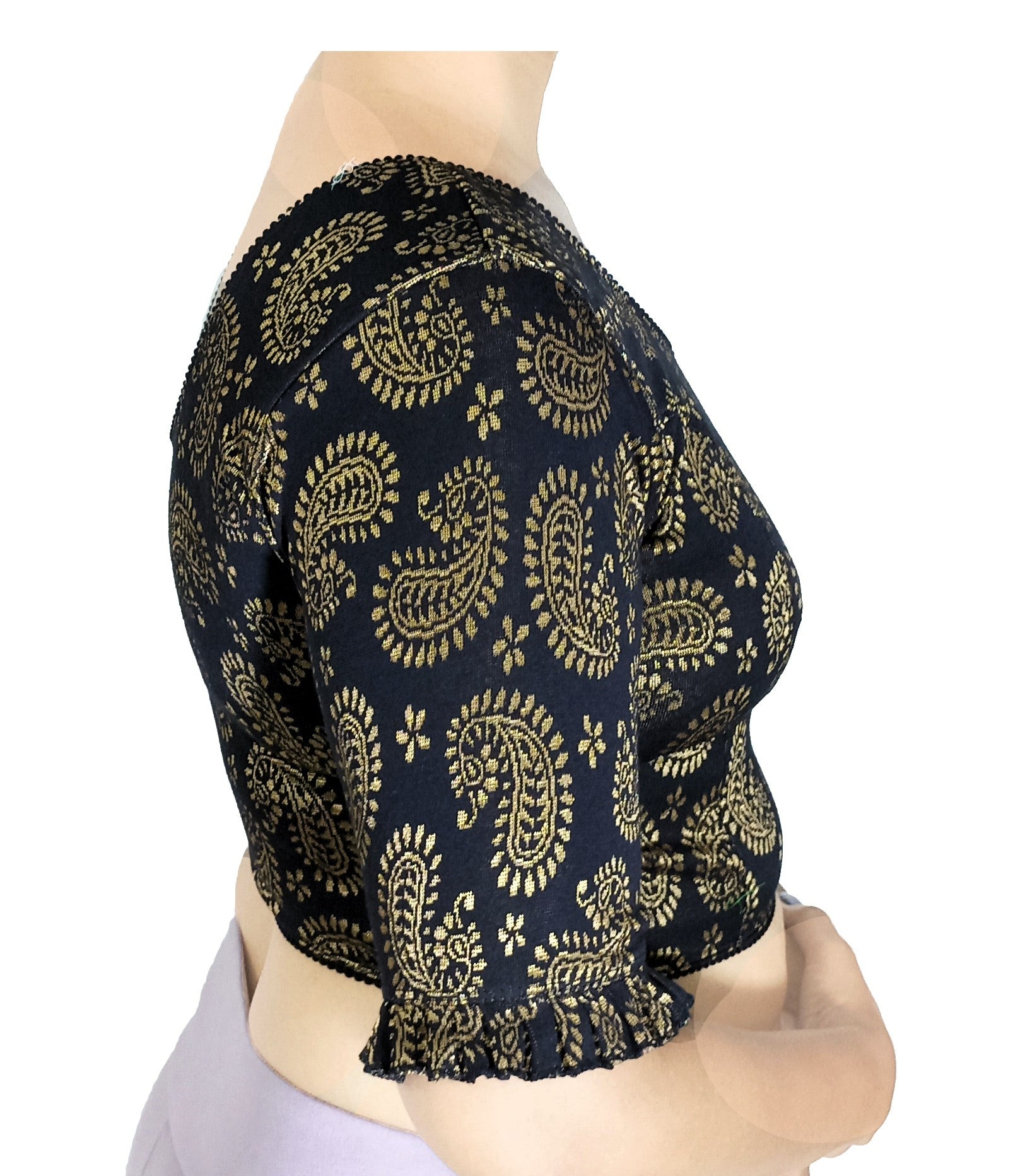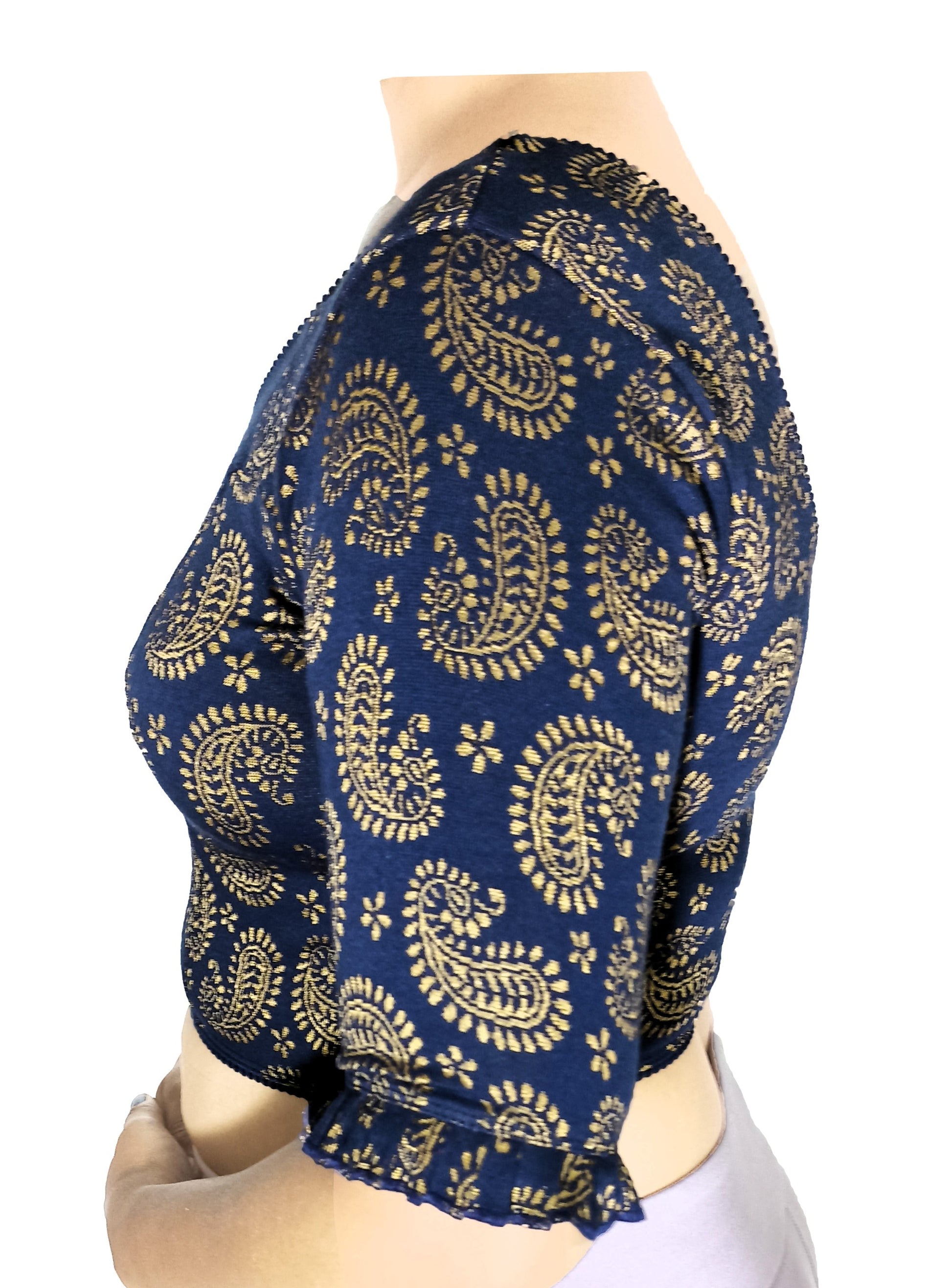 Stretchable Lycra Blouse with Golden Print β Breathable & Comfortable | PU Fashion