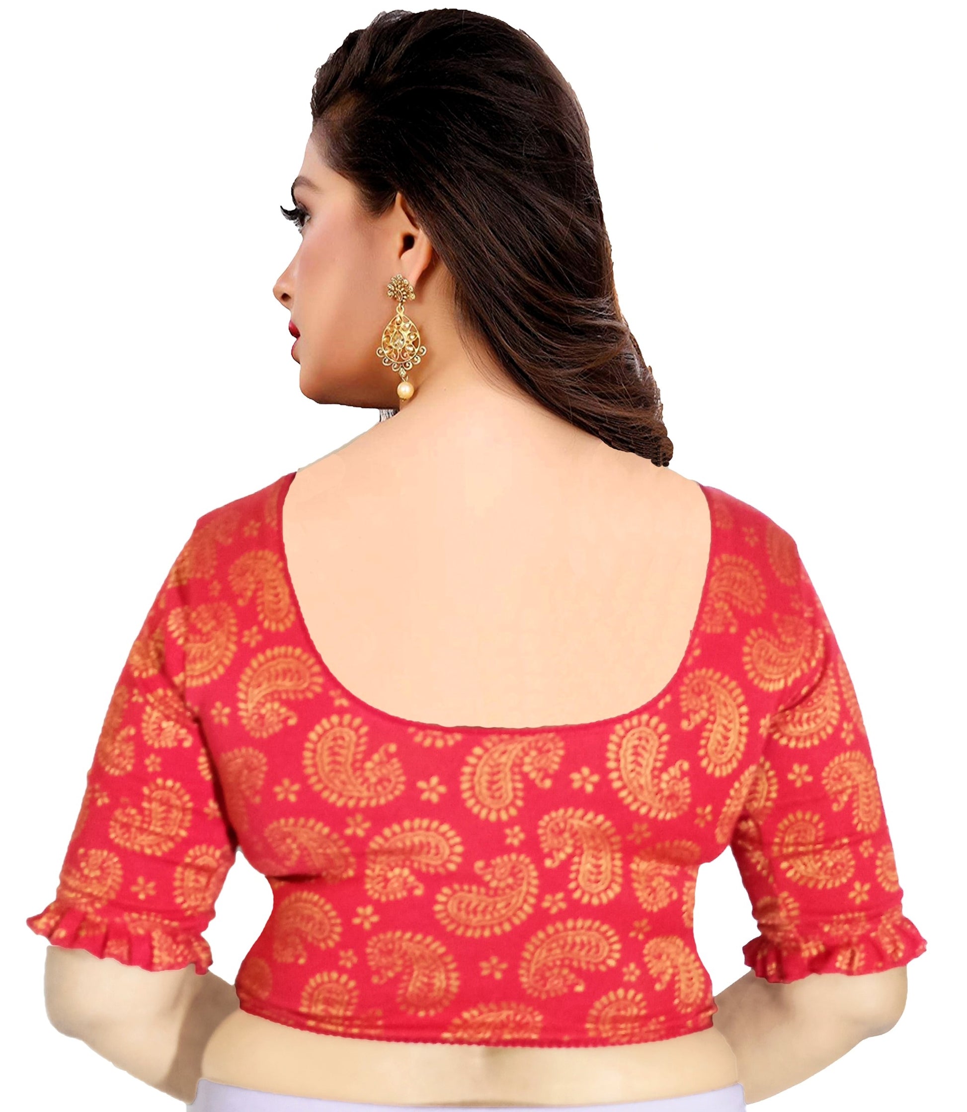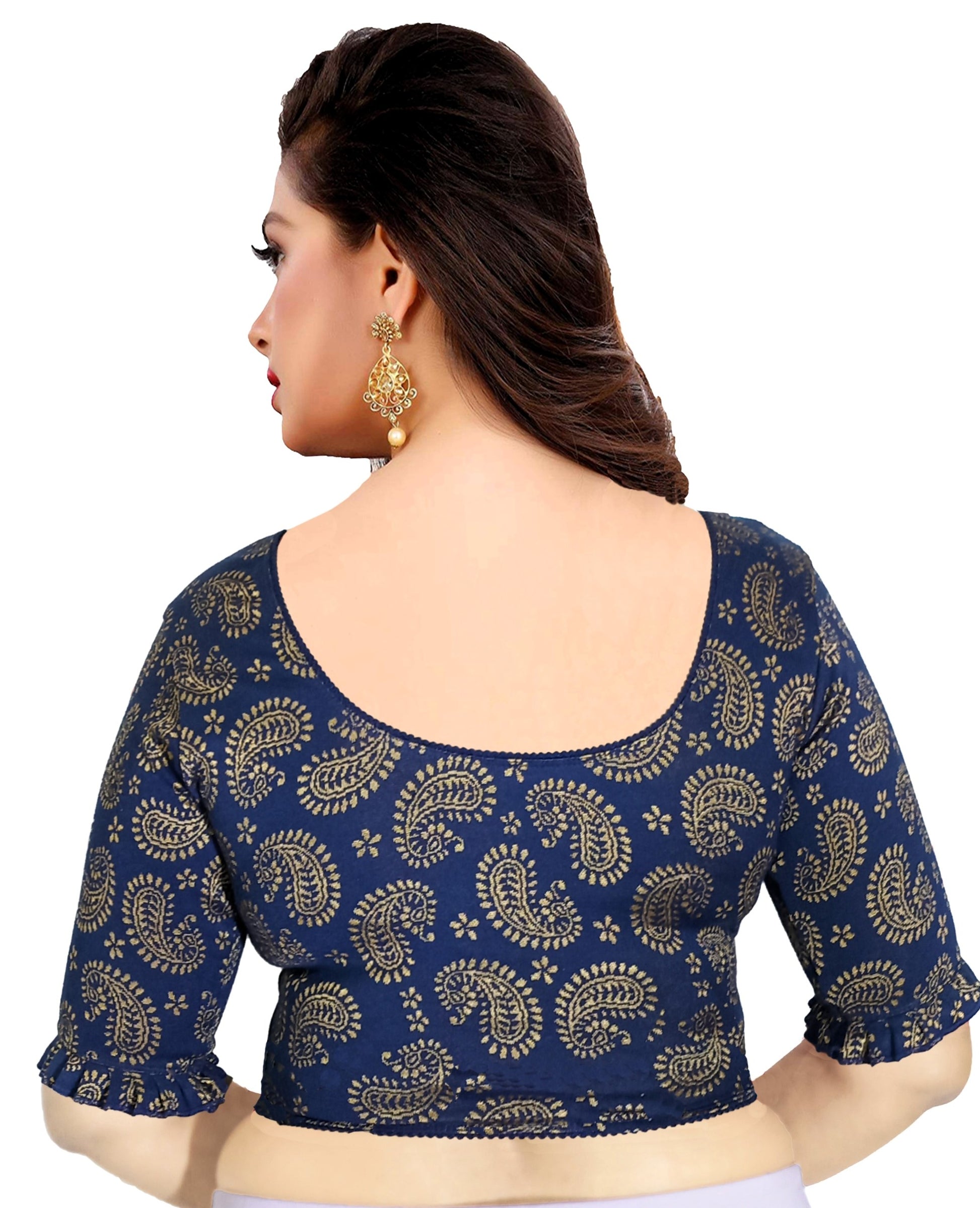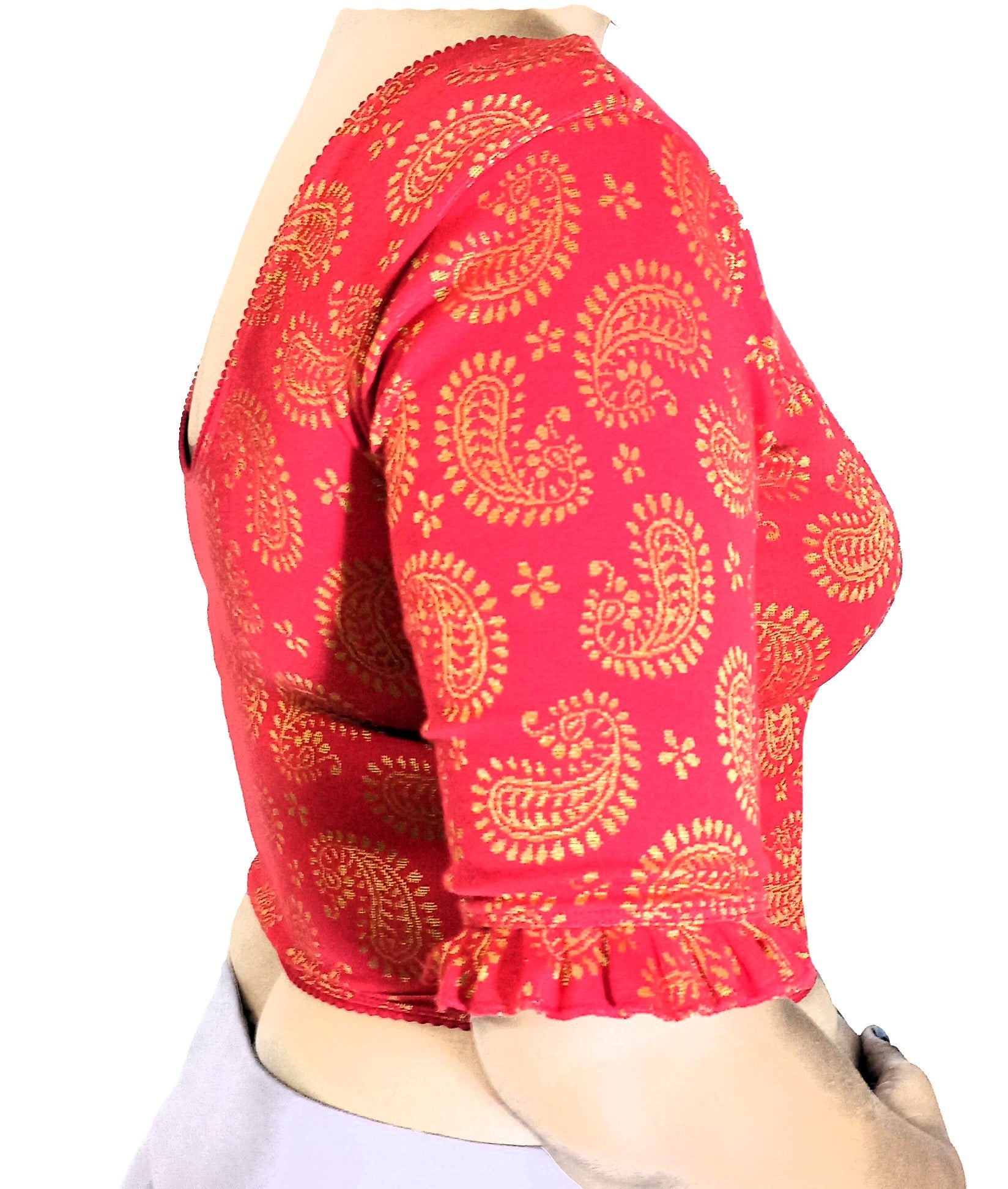 Stretchable Lycra Blouse with Golden Print β Breathable & Comfortable | PU Fashion